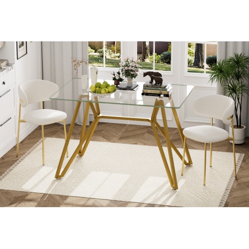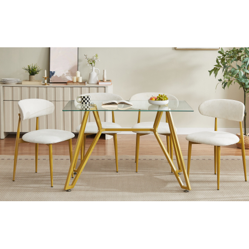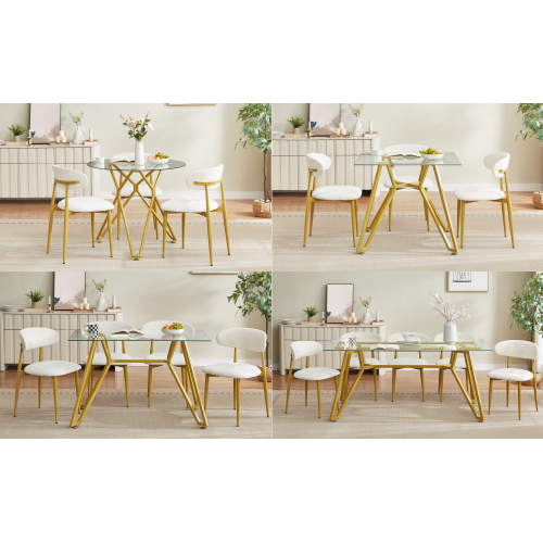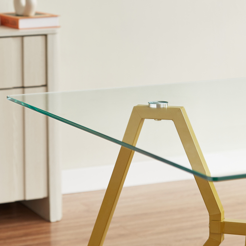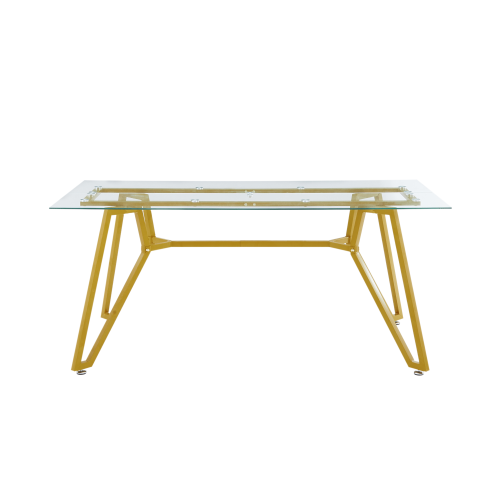 Product Name: 70.9-inch rectangular glass dining table, suitable for 1-8 people, modern style home kitchen dining table, equipped with sturdy metal table legs,suitable for dining room,living rooms, offices, Gold