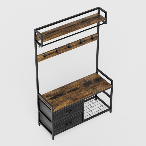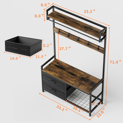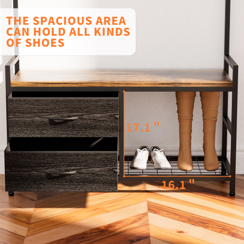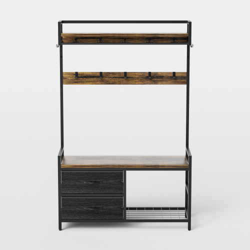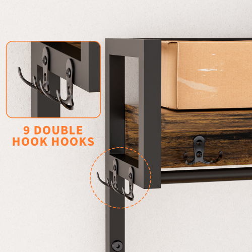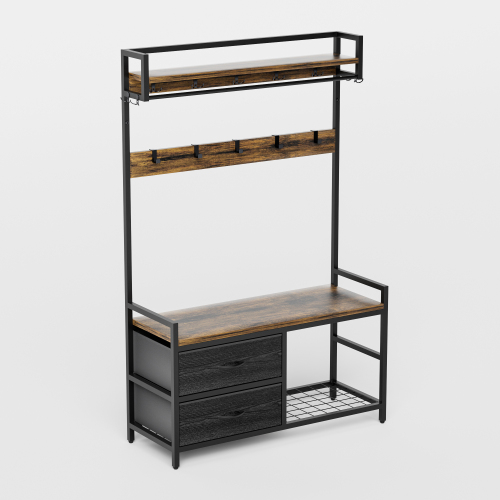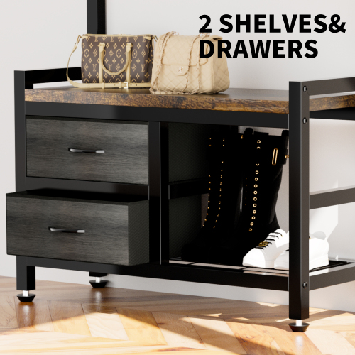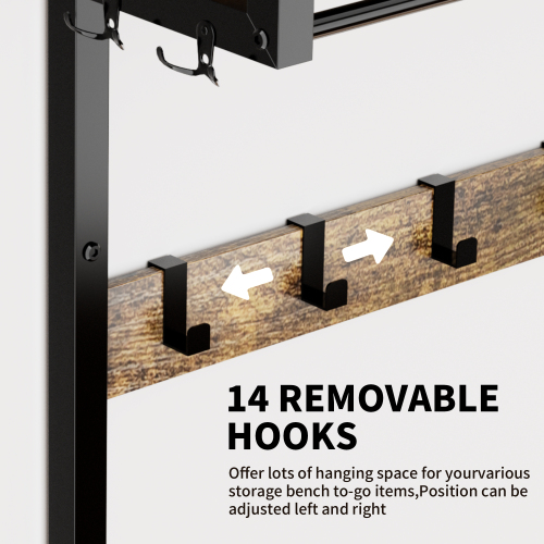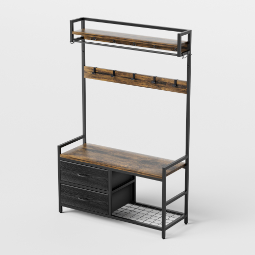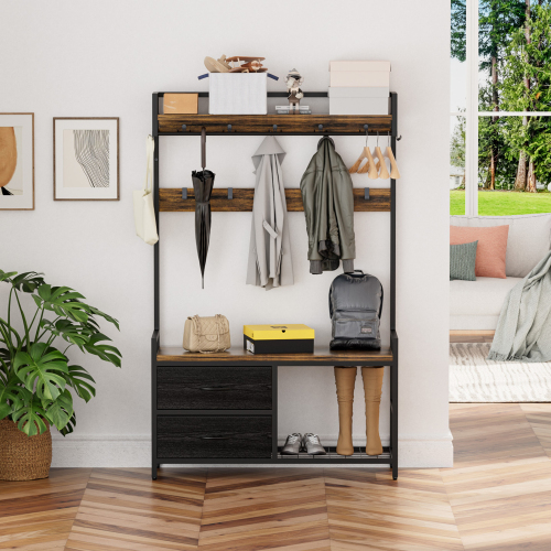 Product Name: 33.1" Wide Hall Tree with 2 Movable Drawers, Shoe Storage, Shelves and Garment Racks, 5-in-1 Entryway Bench with 23 Hooks (Fixed and Movable)