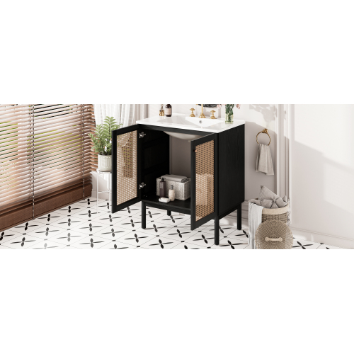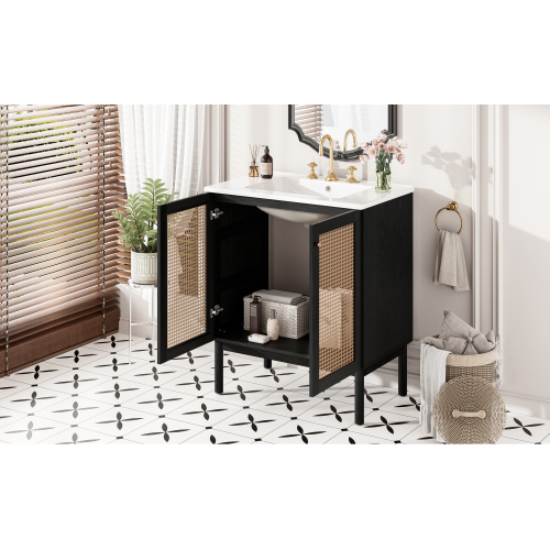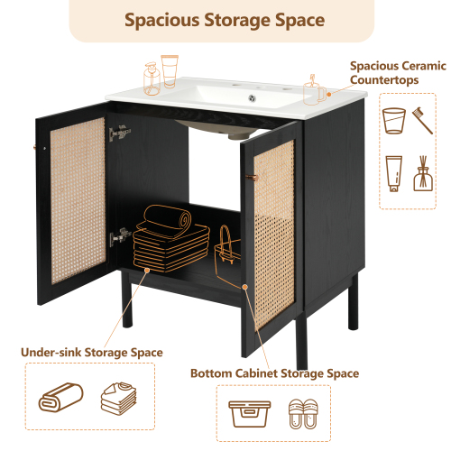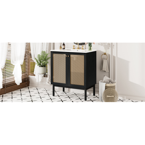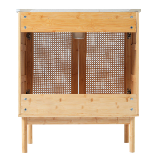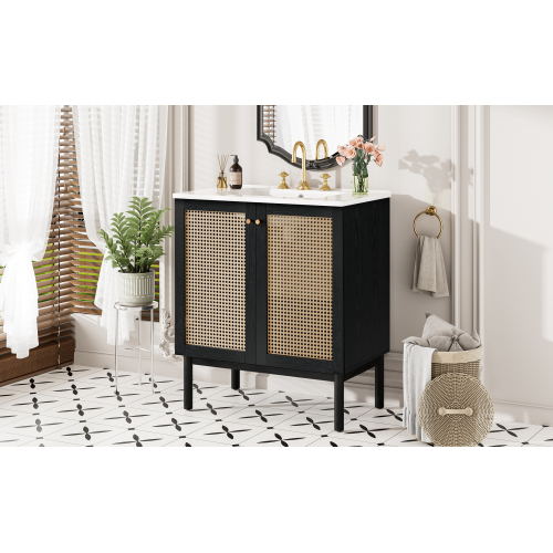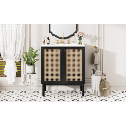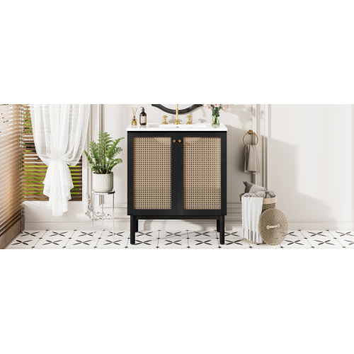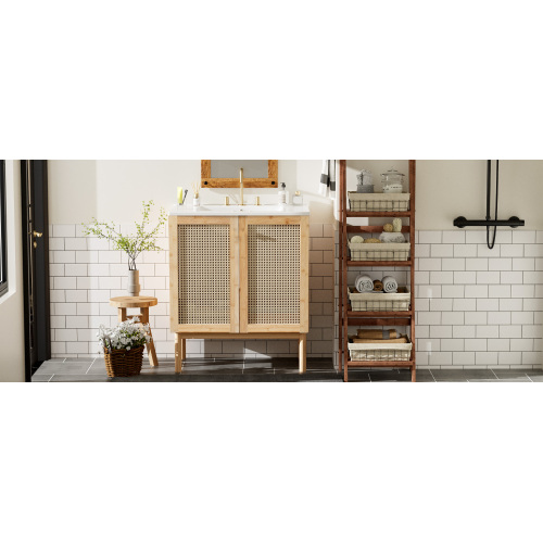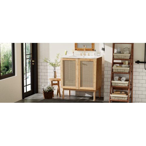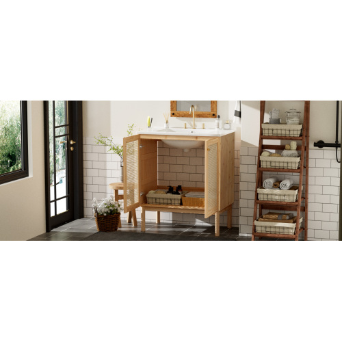 Product Name: 30-inch bathroom vanity crafted from natural materials, featuring handmade rattan doors and soft-closing mechanisms