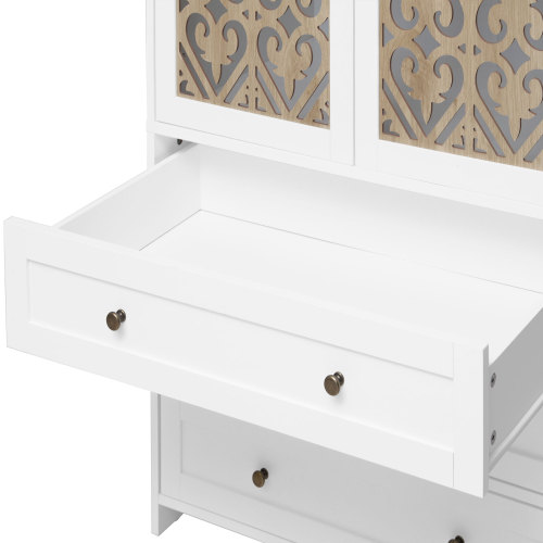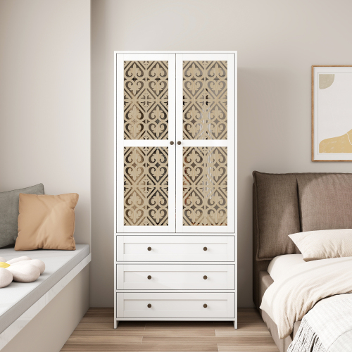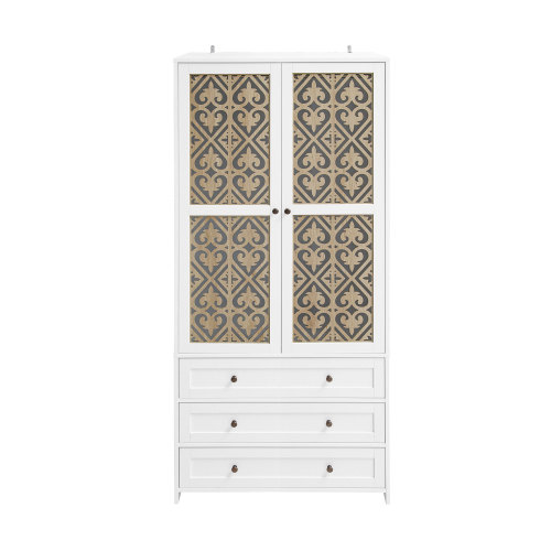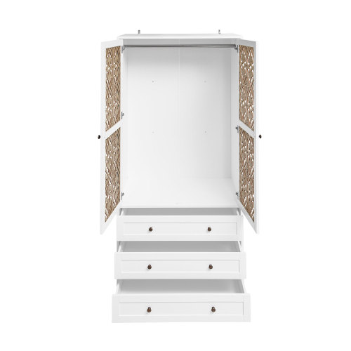 Product Name: Wardrobe with 3 Drawers High Wardrobe Armoire With Rattan For Living Room, Bedroom Organizer