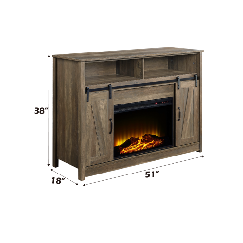 Product Name: Tobias Rustic Oak Finish Fireplace with 2 Storage Drawers