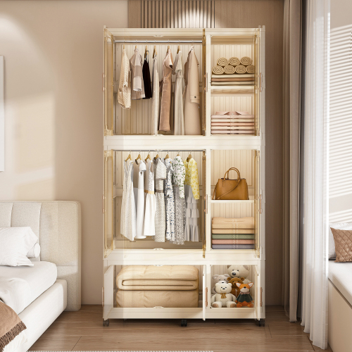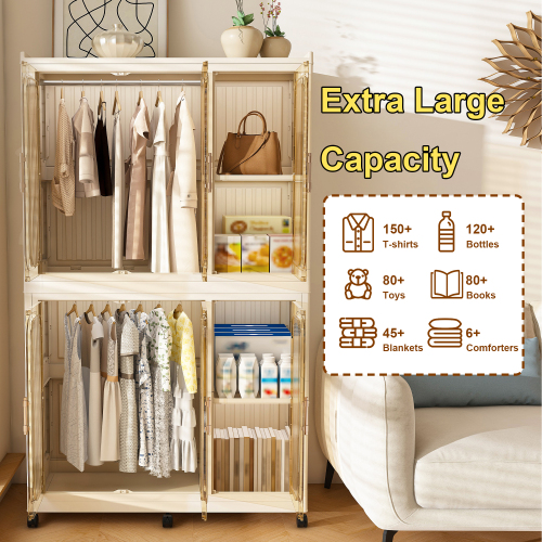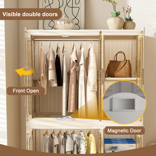 Product Name: Portable Wardrobe Closet Storage Organizer for Clothes,Clothes Dresser,6 Magnetic Doors-6 Cubes & 2 Hanging Rod,6 pcs hangers , Baby Wardrobe Storage Cabinet,White