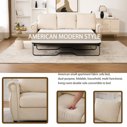 Product Name: Sleeper Sofa Bed, Pull Out Couch with Mattress, 81.5'' 3 Seater Upholstery Sectional Couches, Modern Linen Convertible Sofa, Living Room Furniture for Small Spaces, Apartment, Studio, Beige