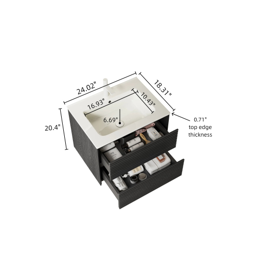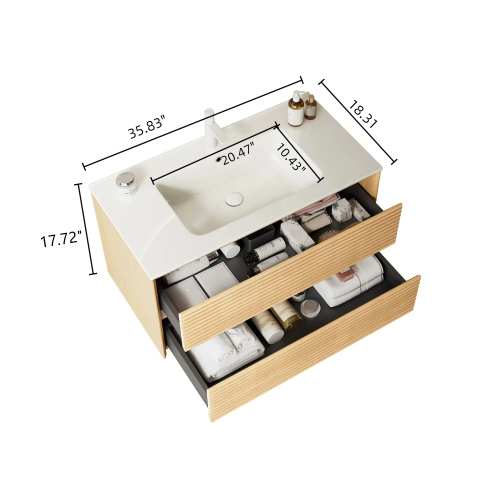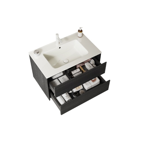 Product Name: BRON 30" Bathroom Vanity with Sink, Wall-Mounted Floating Plywood Bathroom Storage Cabinet with Drawers, White Ceramic Basin, Pre-assembled, Corolla Oak Woodgrain Color