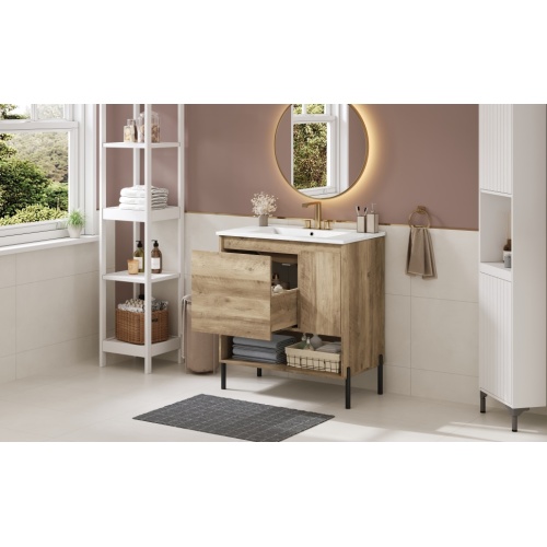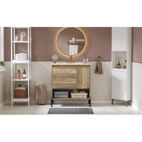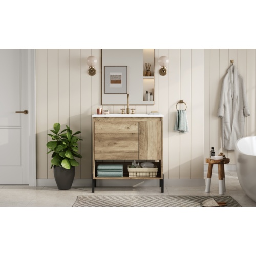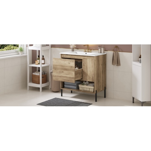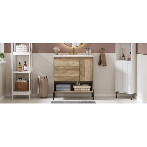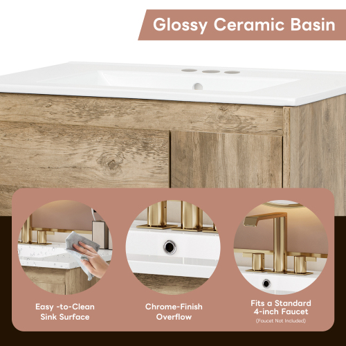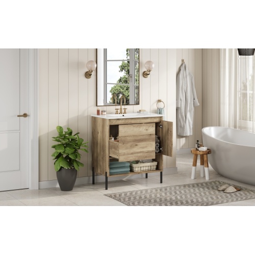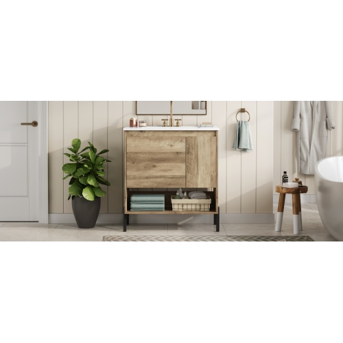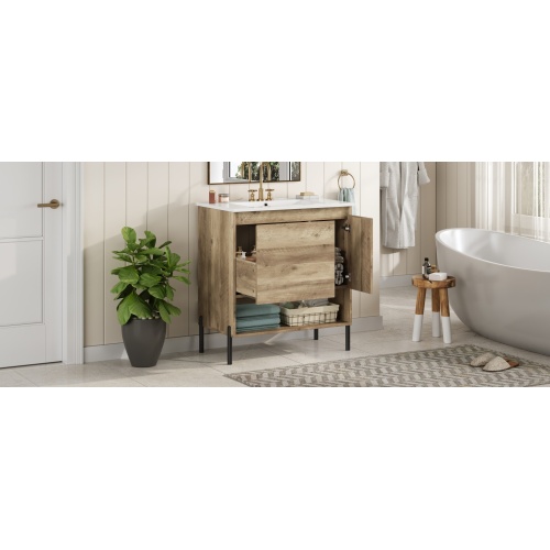 Product Name: 30" Modern Wood Fixture Bathroom Vanity, Bathroom Cabinet with Sliding Drawer, Bathroom Storage Cabinet with Ceramic Basin Sink Top, Single Bathroom Vanities Cabinet with Doors and Open Shelf