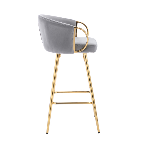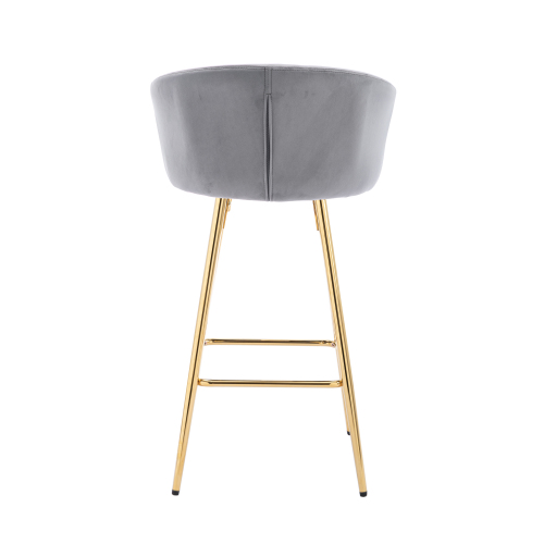 Product Name: 26 Inch Set of 2 Bar Stools,with Chrome Footrest and Base Velvet + Golden Leg Simple Bar Stool,GRAY