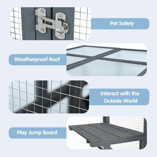 Product Name: Catio Outdoor Cat Enclosure with Double Enter Doors, Grey Climbing shelves, Weatherproof Pine Wood Playground with 7 Freely Combination Wood Boxes