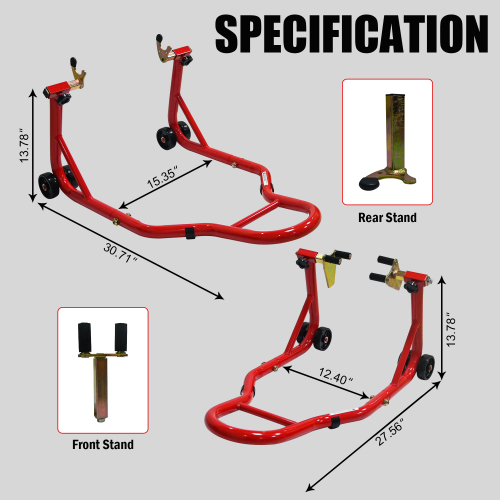 Product Name: Motorcycle Stand Lift 440lbs Front Rear Combo Stand Lift Stand Front Wheel Fork Stand Rear U+K Fork Swingarm Spool Stand Compatible with Most Yamaha Honda Kawasaki Suzuki Motorcycles-- Black