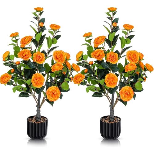 Product Name: Artificial Camellia Tree 2 Pack, 36"Faux Camellia Plant in Pot with Orange Flowers, Greenery Potted Plant for Indoor Outdoor Office Home Porch Decor, Orange ( BACK TO SCHOOL )