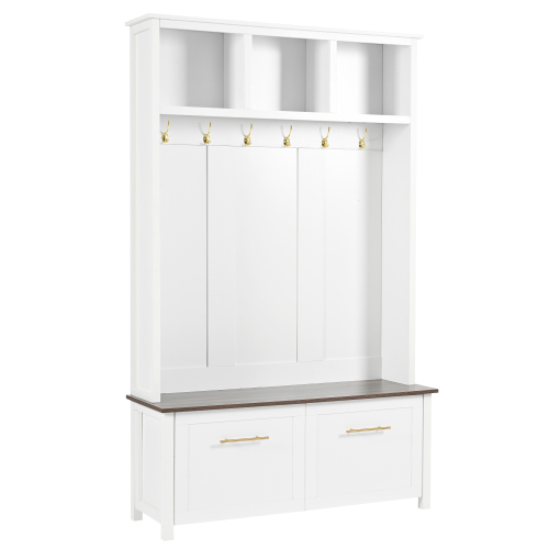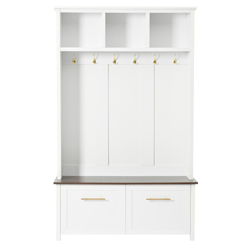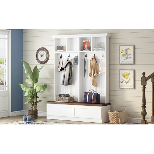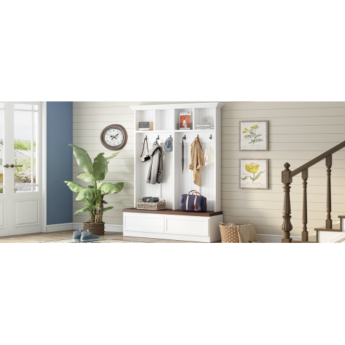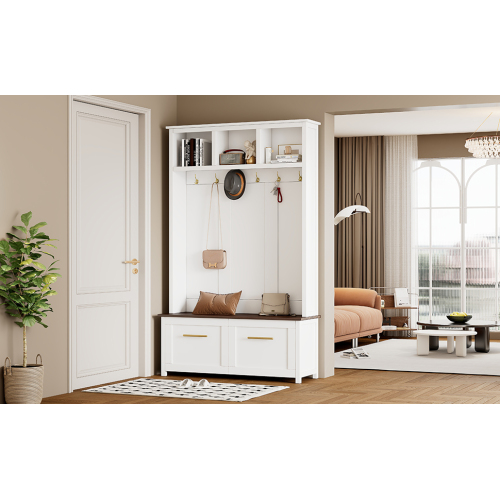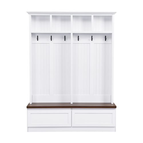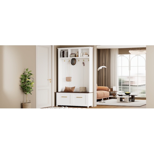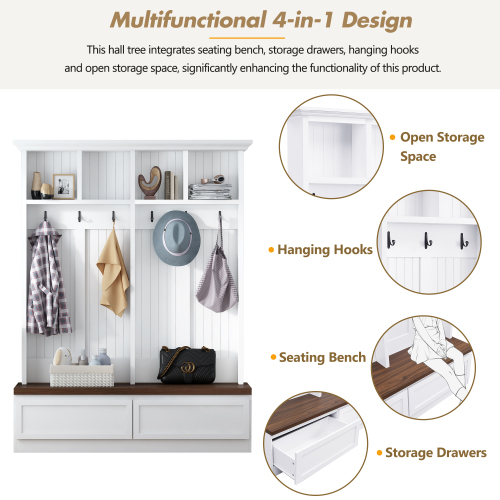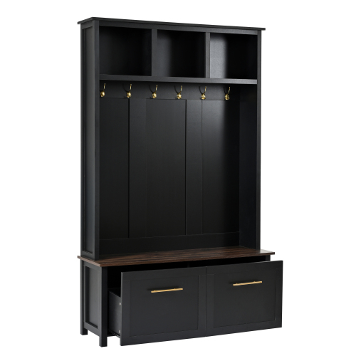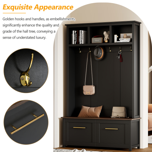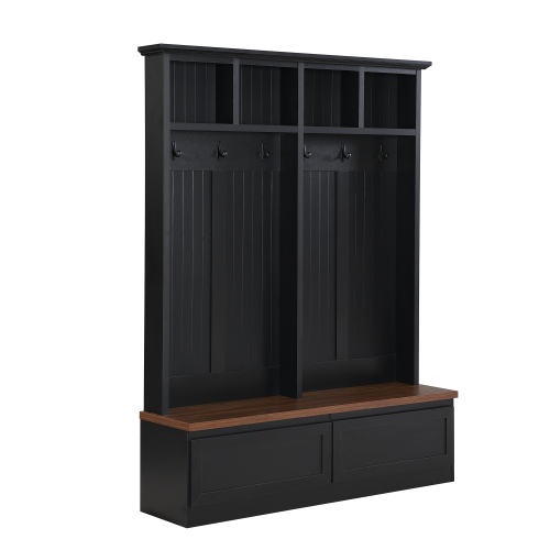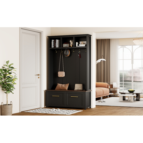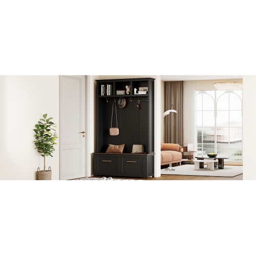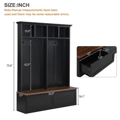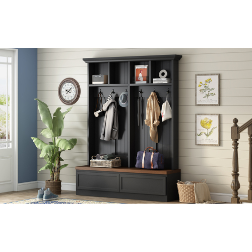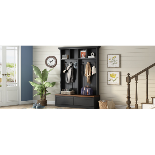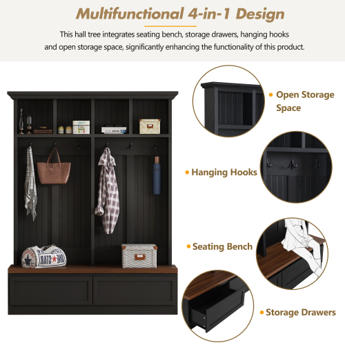 Product Name: [Assembly Video] Farmhouse 4-in-1 Hall Tree with Wood Grain Bench, Mudroom Versatile Coat Rack with 2 Large Drawer, Entrance Organizer for Hallway, Living Room, Black, 55.9"W (Same as N721P205660)