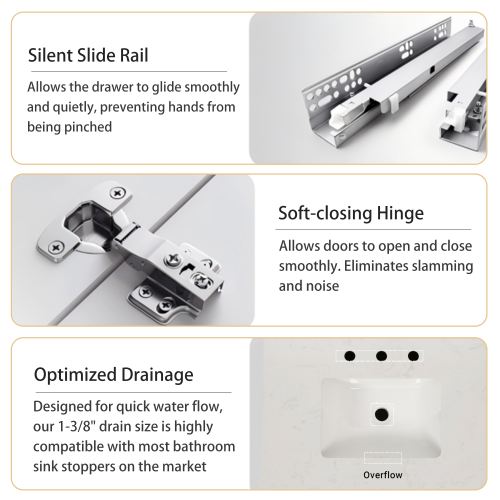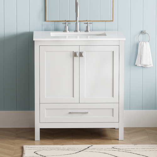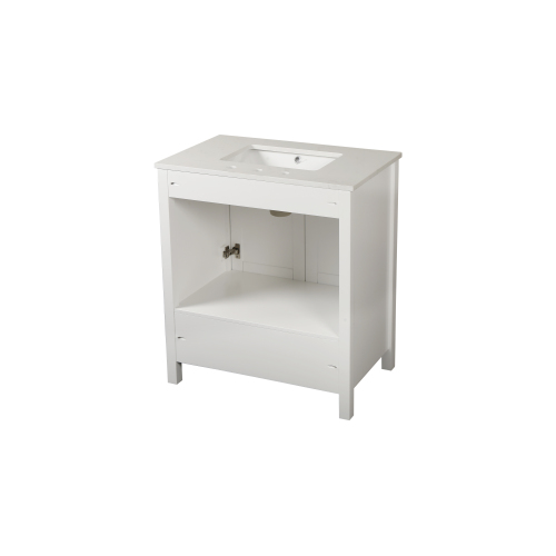 Product Name: 30" Freestanding Bathroom Vanity with Sink, Carrara Engineered Marble Vanity Top with Under-mounted Rectangular Ceramic Sink, Large Storage Soft-Close Door, Solid Wood Frame, White 24V03-30WH