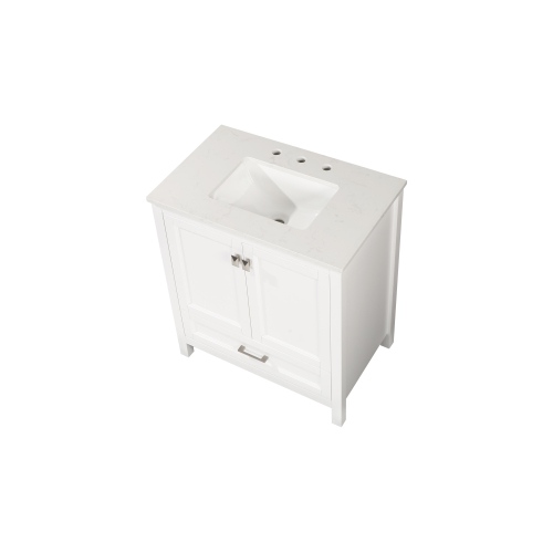 • 30" Freestanding Bathroom Vanity with Sink, Carrara Engineered Marble Vanity Top with Under-mounted Rectangular Ceramic Sink, Large Storage Soft-Close Door, Solid Wood Frame, White 24V03-30WH