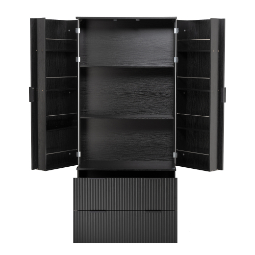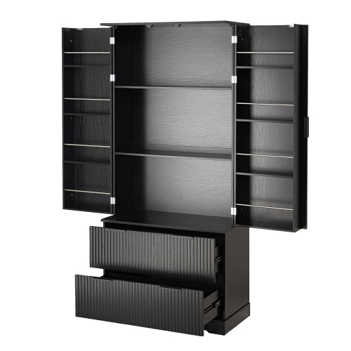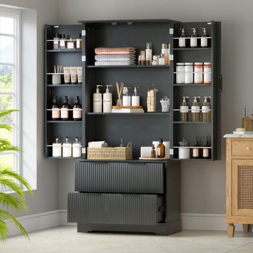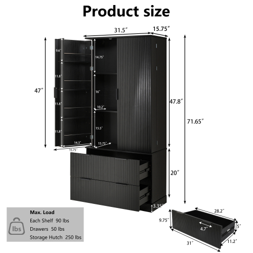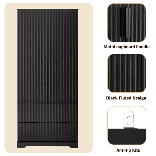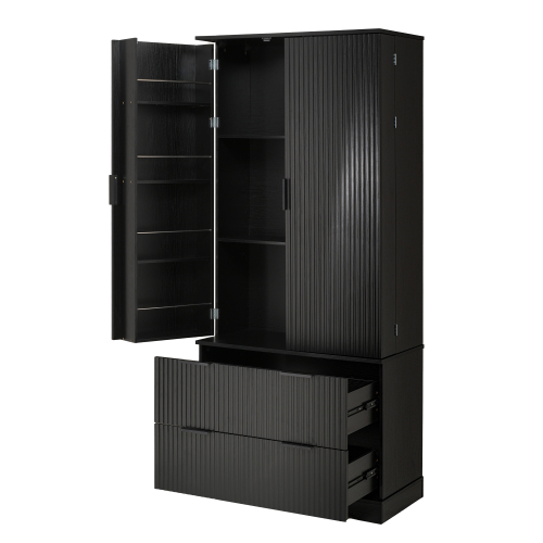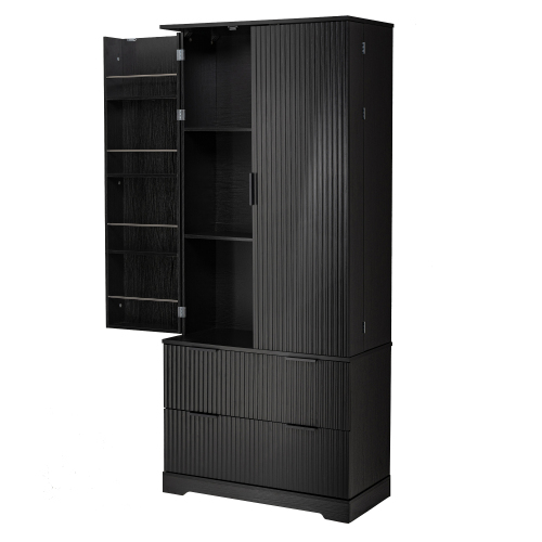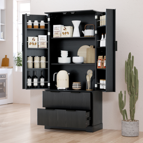 Product Name: 72" Modern Fluted Kitchen Pantry Cabinet with 2 Large Drawers & 8-Door Spice Rack, Freestanding Storage Organizer for Bathroom, Dining Room, Office, Entryway, Black