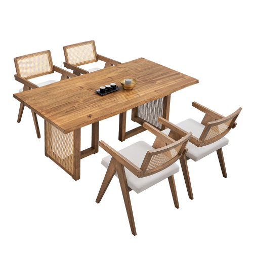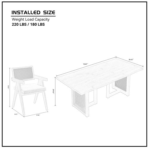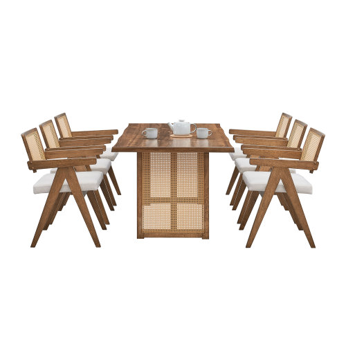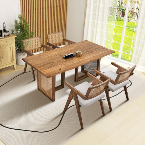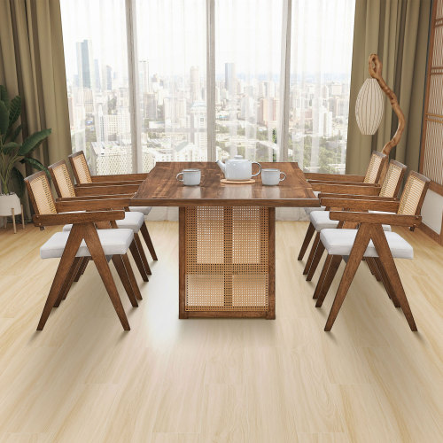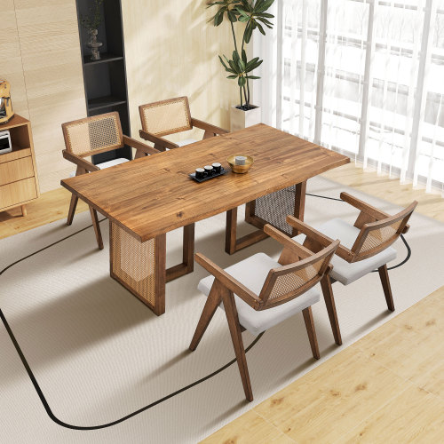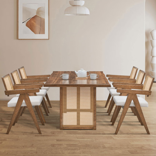 Product Name: 86.61 Inch Oversize Rectangular Waves Dining Table,Wooden Dining Table for 6 Persons,Mid Century Modern Large Kitchen Table for Living Room,Bohemian Dining Table with Rattan Weave for Restaurant