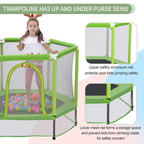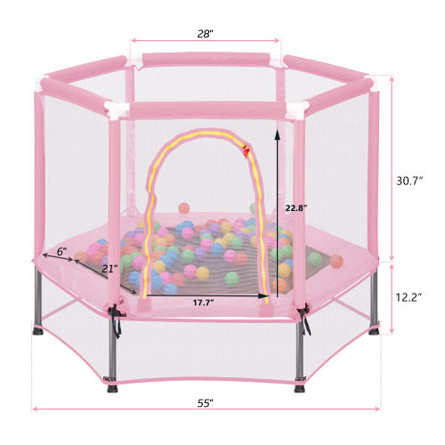 Product Name: 55'' Toddlers Trampoline with Safety Enclosure Net and Balls, Indoor Outdoor Mini Trampoline for Kids