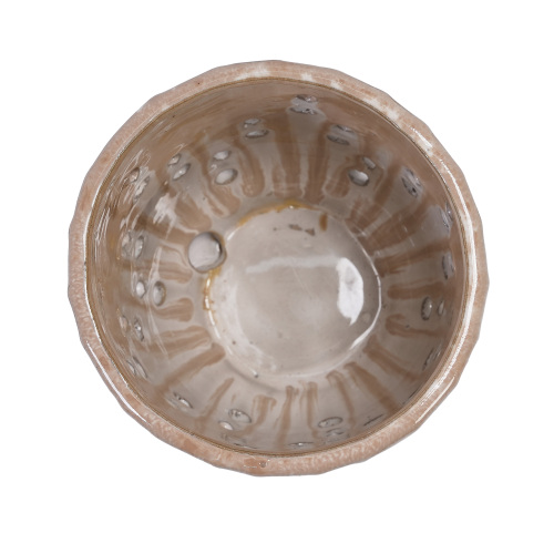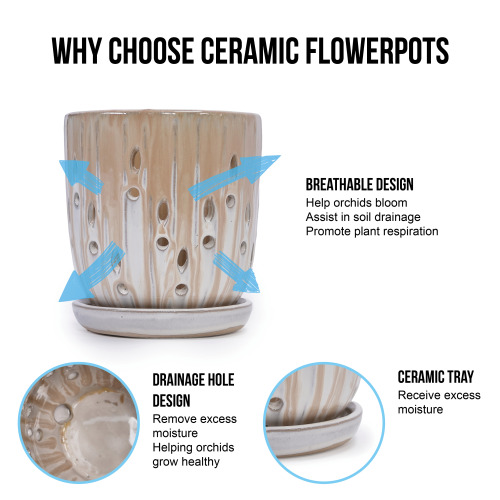 Product Name: Set of 2 Striped Ceramic Flowerpot with Drainage Hole, 8" Modern Planter for Patio, Garden, Windowsill - Brown