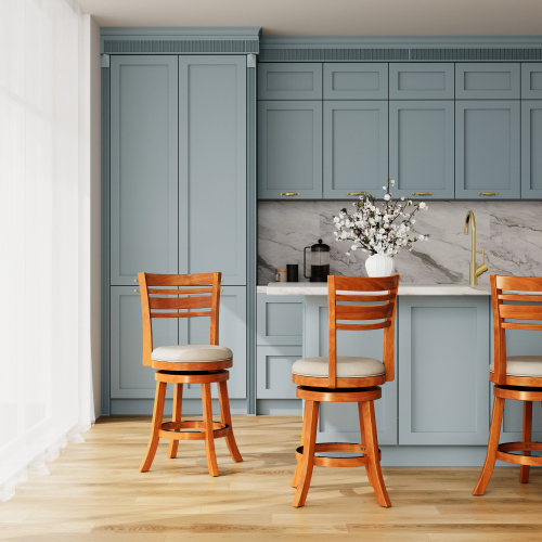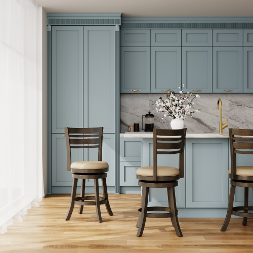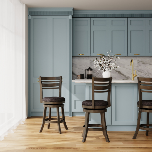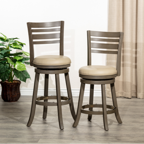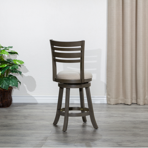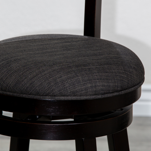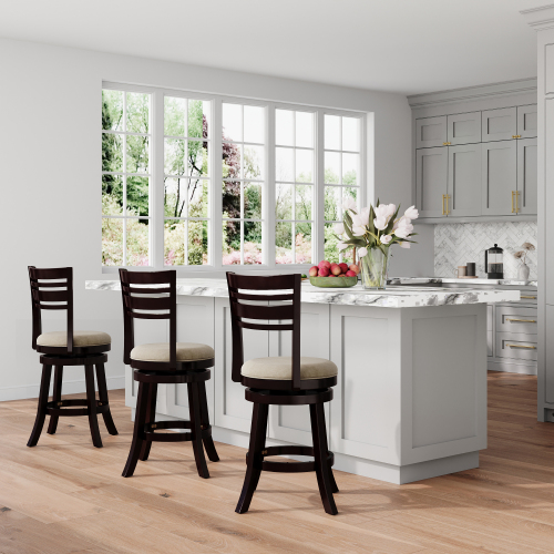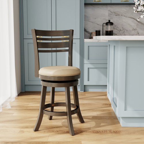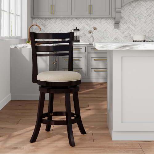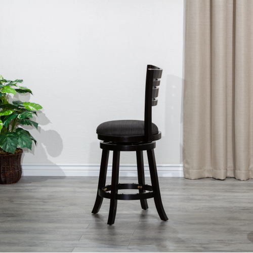 Product Name: 24" Counter Height Slat Back Swivel Stool, Espresso Finish, Black Leather Seat