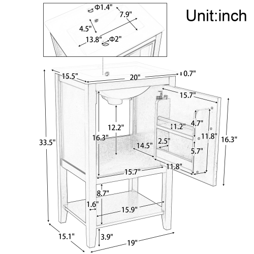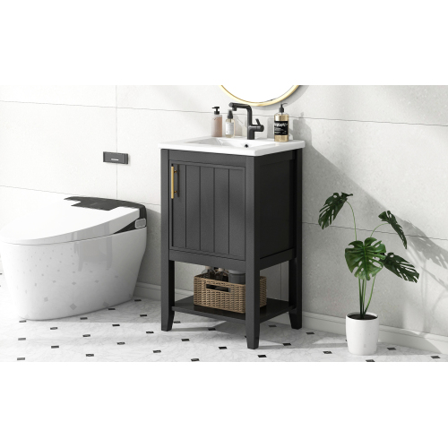 Product Name: 20" Bathroom Vanity with Sink, Bathroom Cabinet with Soft Closing Door, Storage Rack and Open Shelf, Black