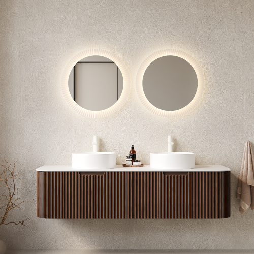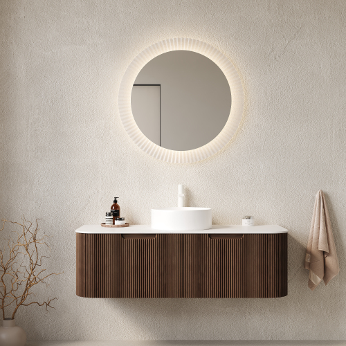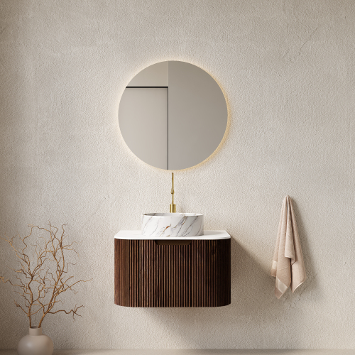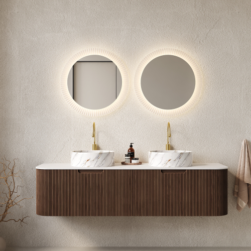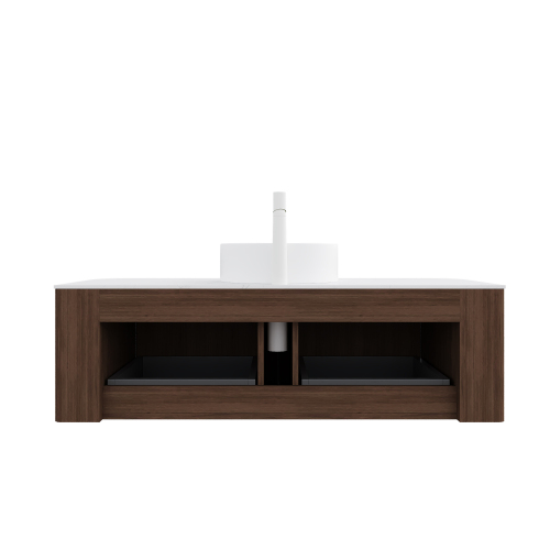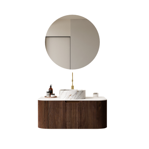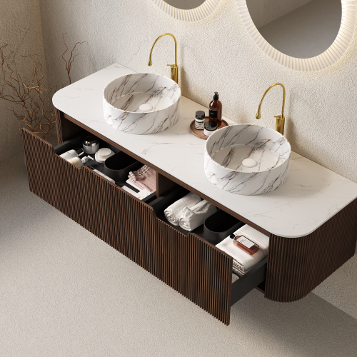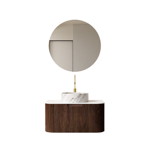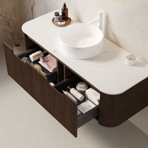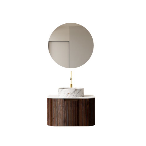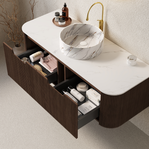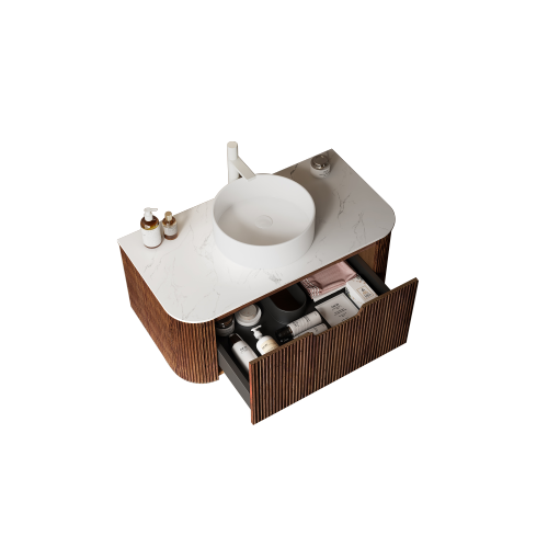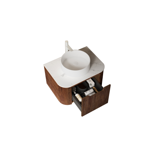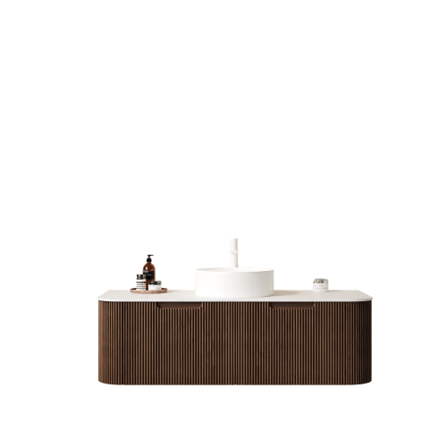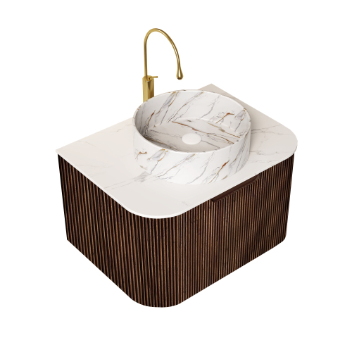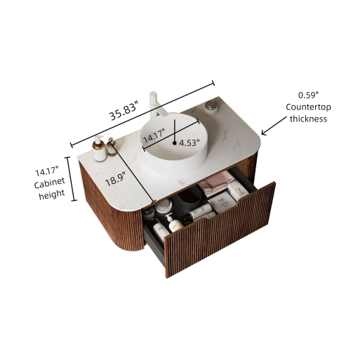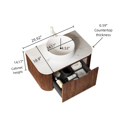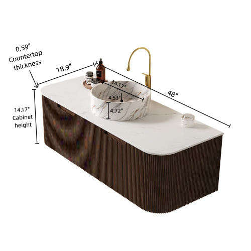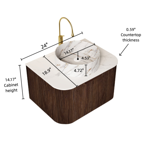 Product Name: DINA 24" Bathroom Vanity with Sink, Wall-Mounted Floating Curved Edges Striped Bathroom Storage Cabinet with Drawer, White Ceramic Basin without Faucet, Pre-assembled, Dark Walnut Woodgrain Color