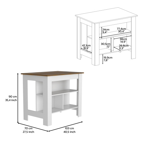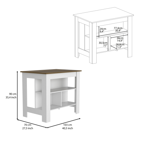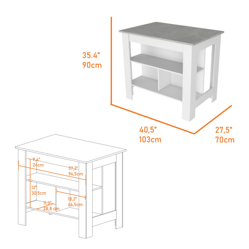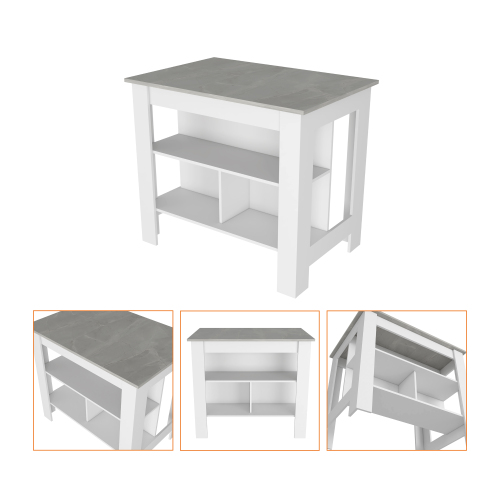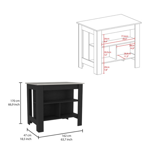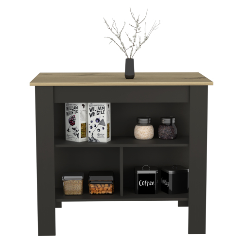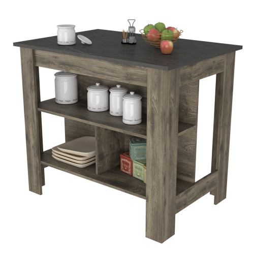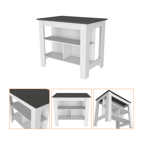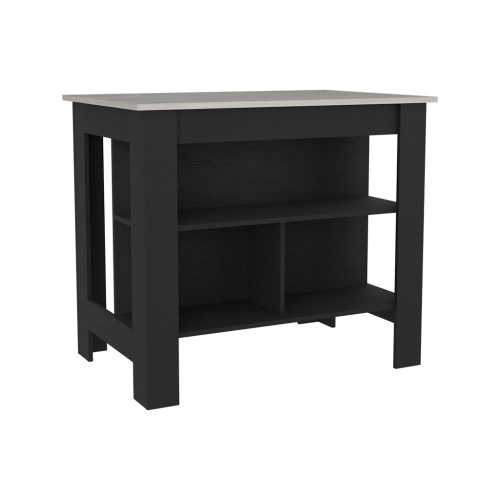 Product Name: Kitchen Island Dozza, Three Shelves, White / Onyx Finish