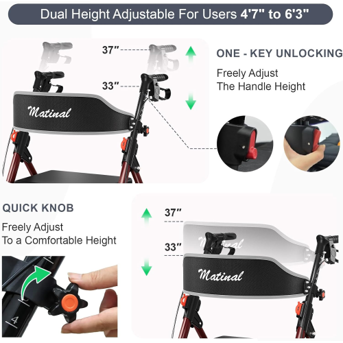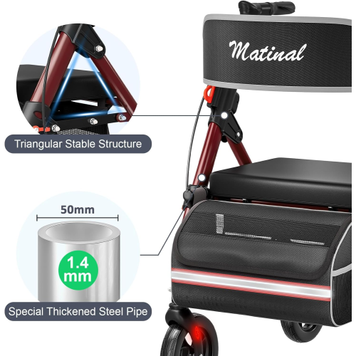 Product Name: Matinal Foldable Rollator Walkers with Seat for Seniors, 350 lb Capacity, 8'' Big Wheels, 6-Position Height, Premium Hybrid Rolling Walker - Aluminum and Carbon Steel (Burgundy)