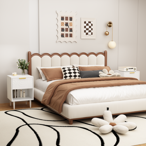 Product Name: 22.83'' H Modern White Nightstand with One Drawer and Open Shelf, Gold - Accented Handle, Ideal for Bedroom Decor