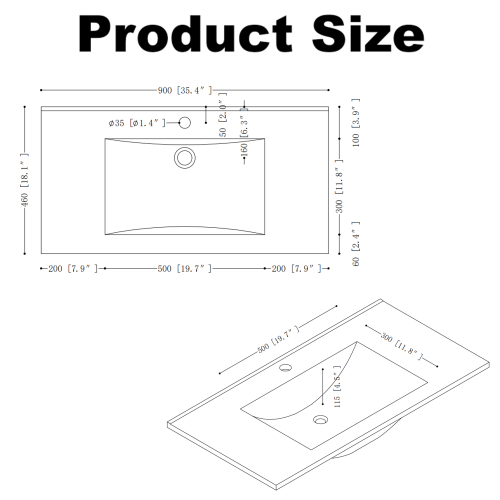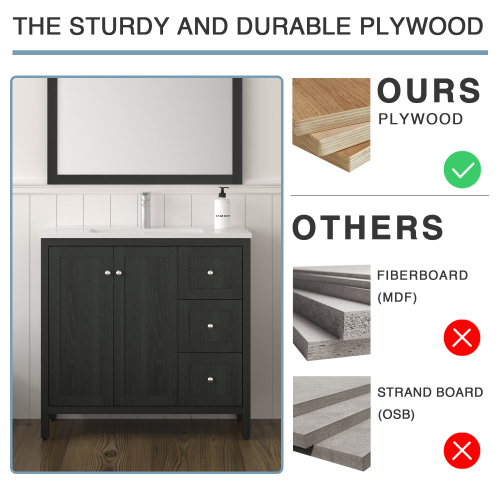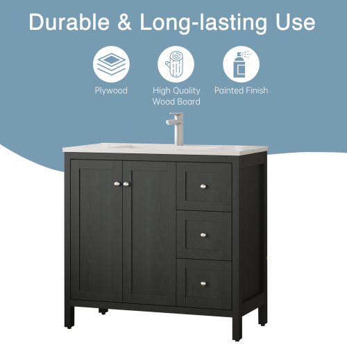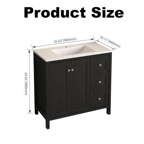 Product Name: 35.5" Bathroom Vanity , Modern Bathroom Cabinet with Basin, Bathroom Storage Cabinet with Soft Closing Doors and 3 Drawers, Munich Black