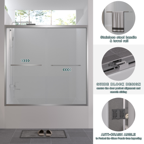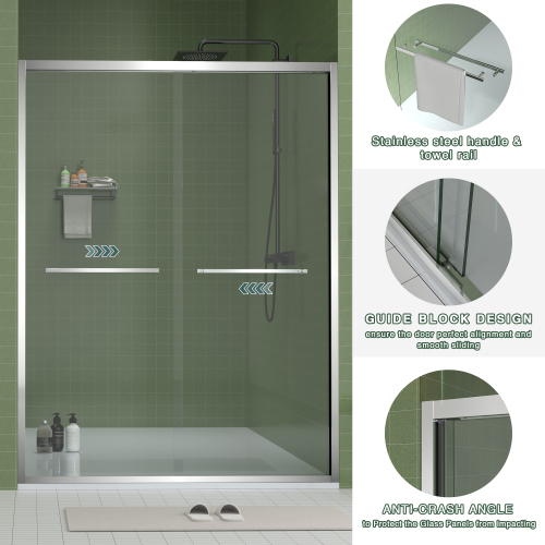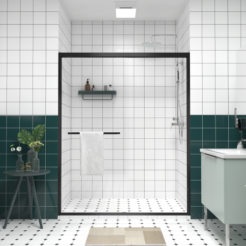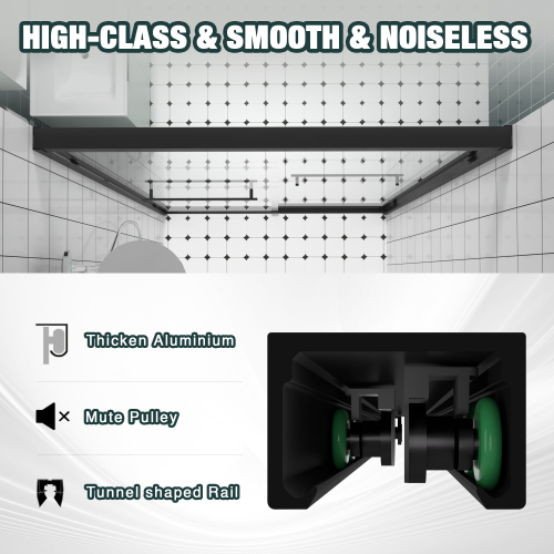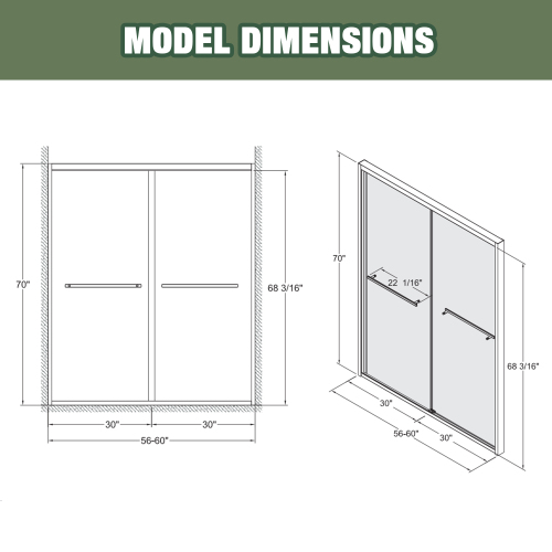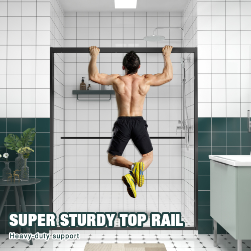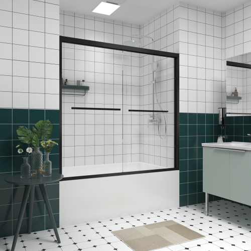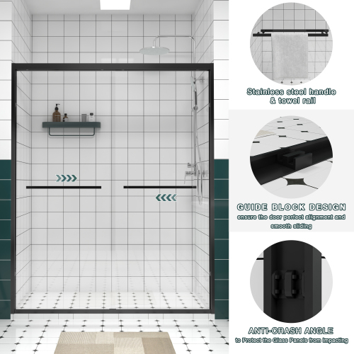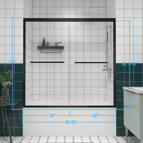 Product Name: 56-60"x74" Aluminum Frame Double Sliding Shower Door,Bypass Bathroom Sliding Door with Premium 1/4" (6mm) Clear Tempered Glass, Black Hardware Sliding Glass Shower Enclosure,Matte Black Finished