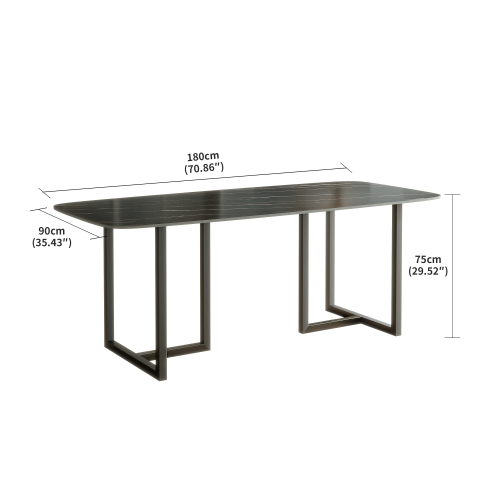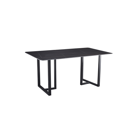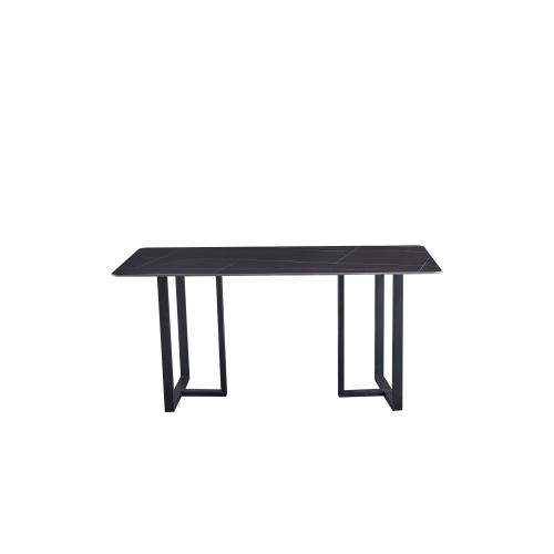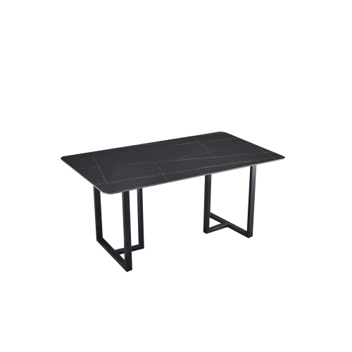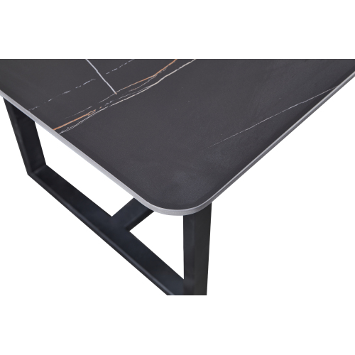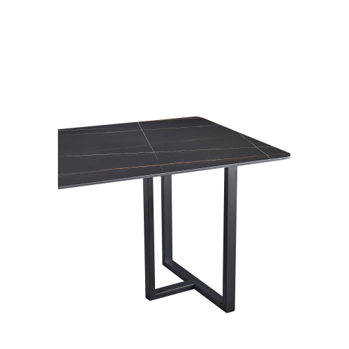 Product Name: Carbon Steel Dining Table with Lauren Black Gold Stone Surface - Supports up to 74 kg