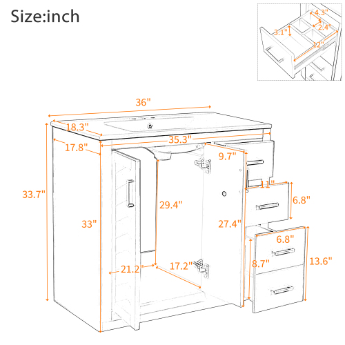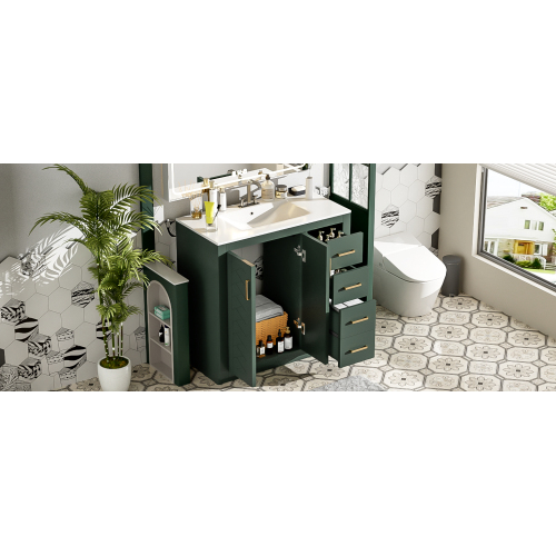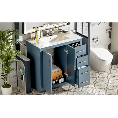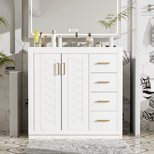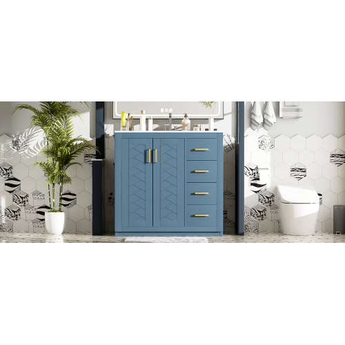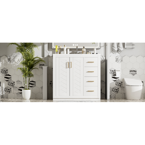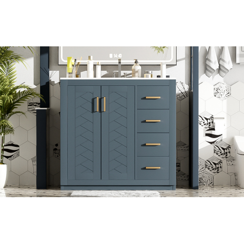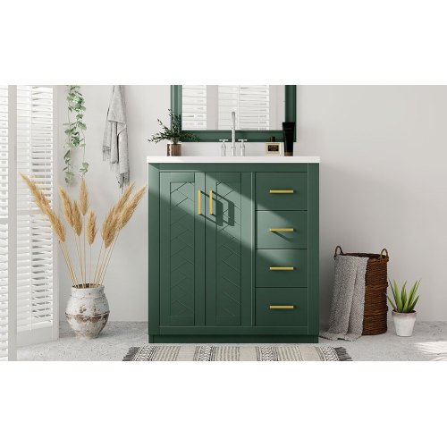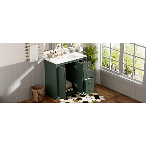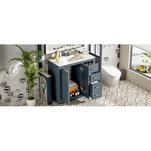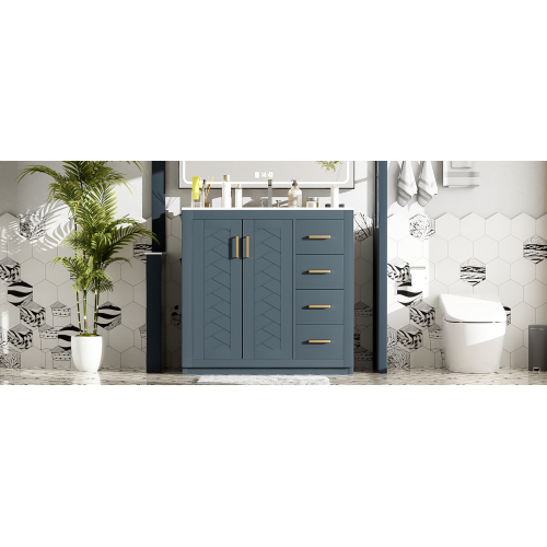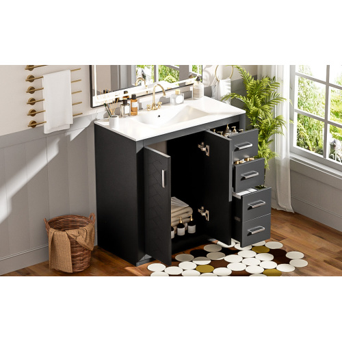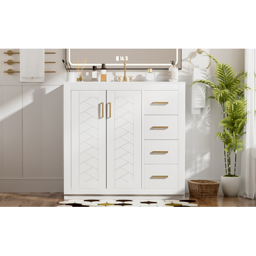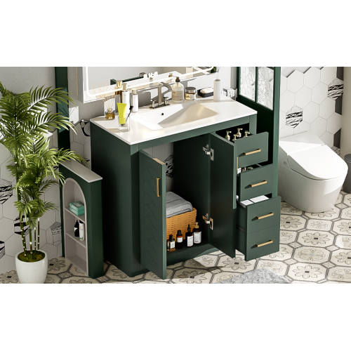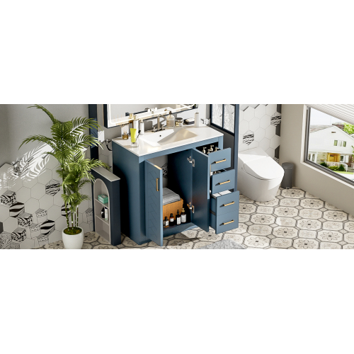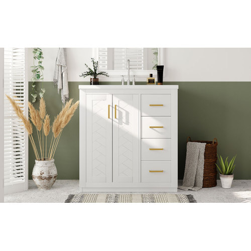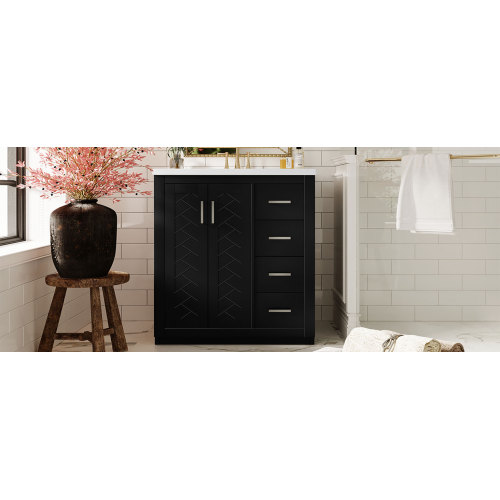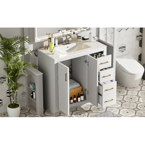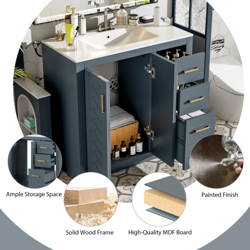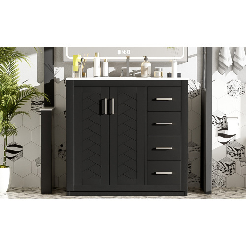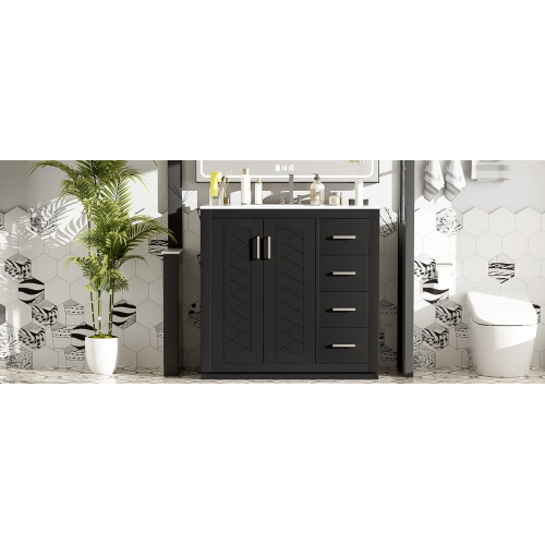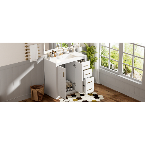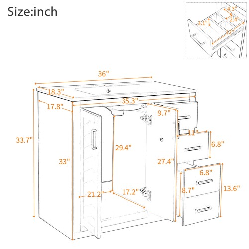 Product Name: 36'' Bathroom Vanity with Ceramic Sink Combo, Solid Wood Frame Bathroom Storage Cabinet, Freestanding Vanity Set with 3 Drawers& Soft Closing Doors