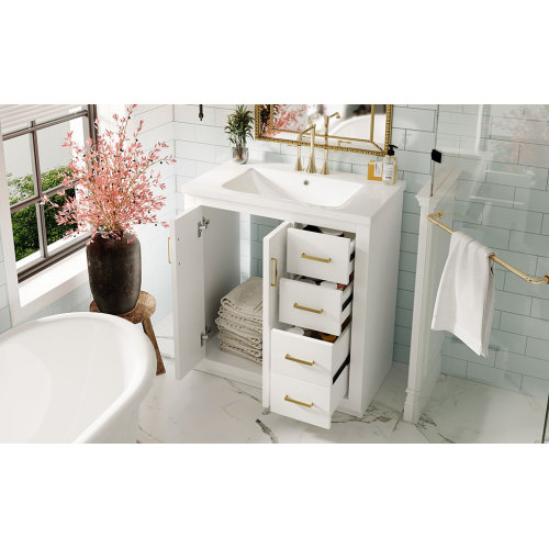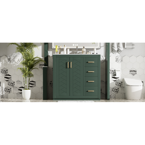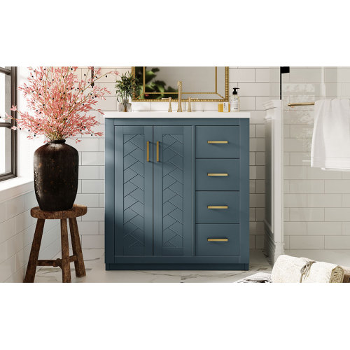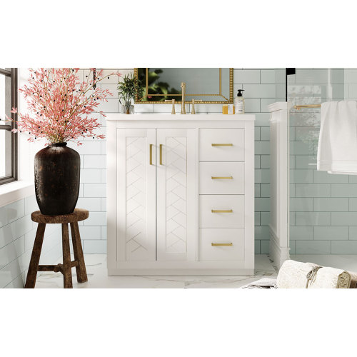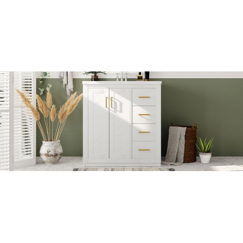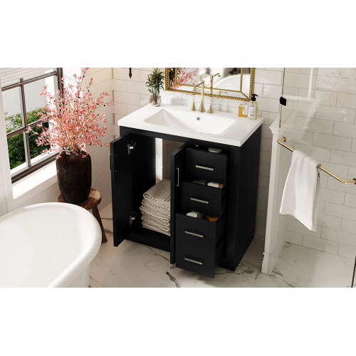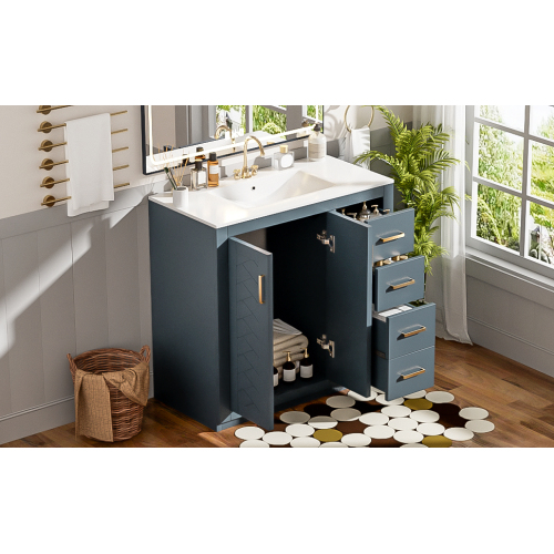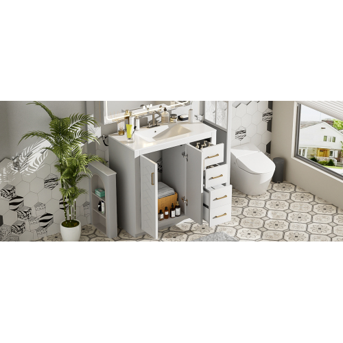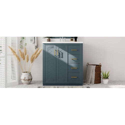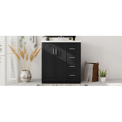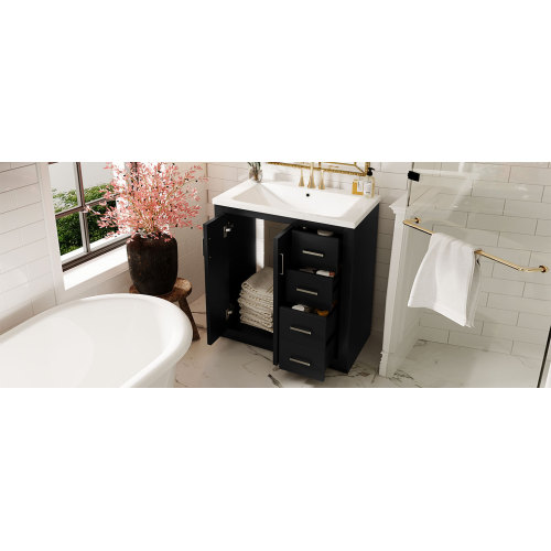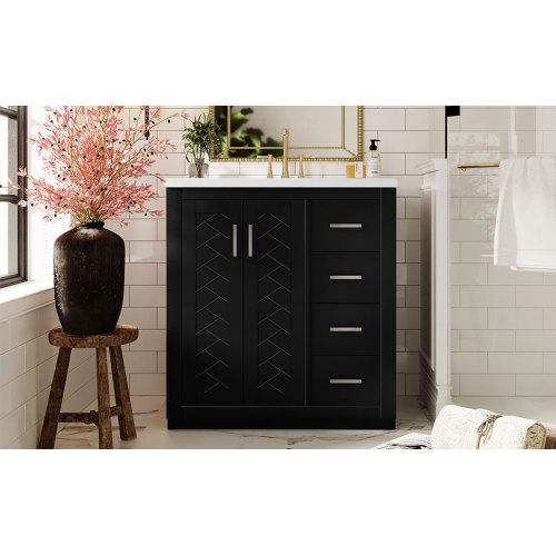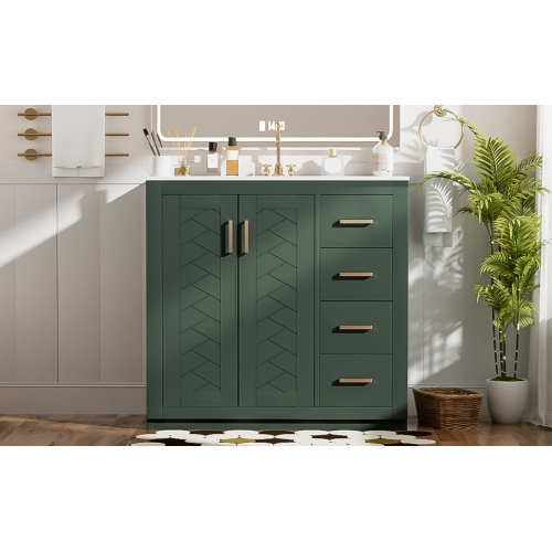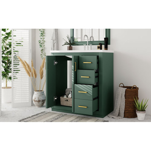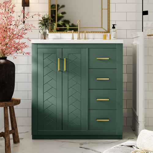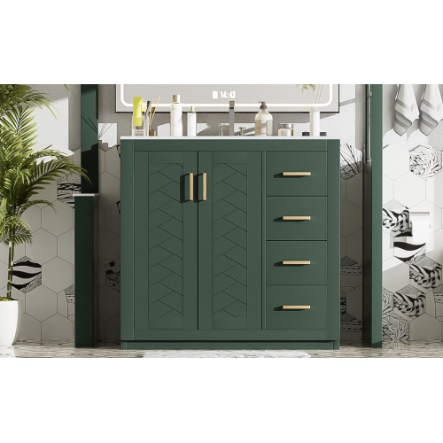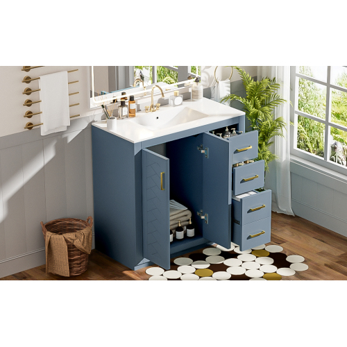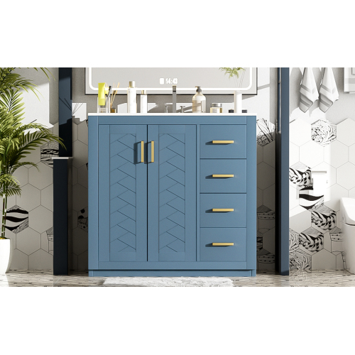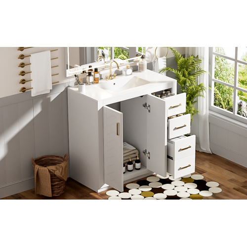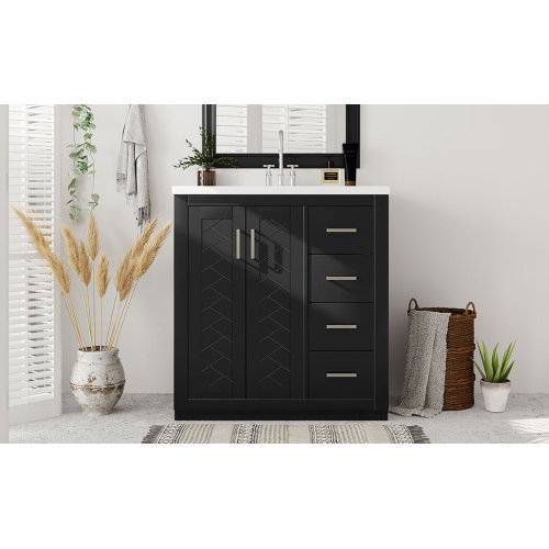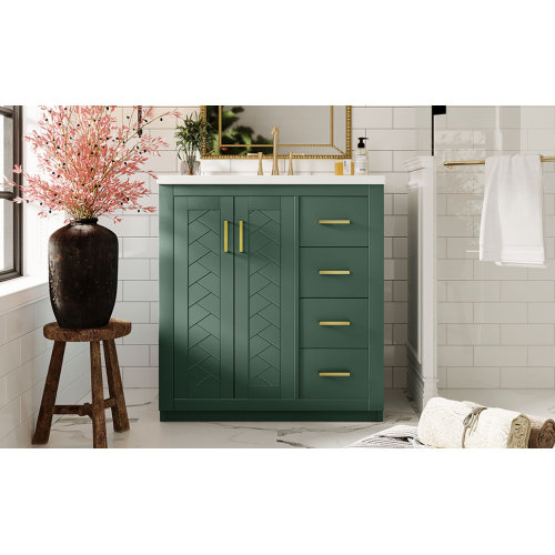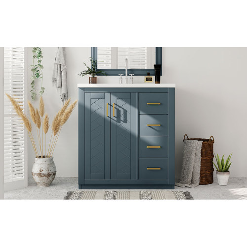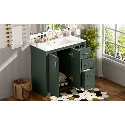 Product Name: 36'' Bathroom Vanity with Ceramic Sink Combo, Solid Wood Frame Bathroom Storage Cabinet, Freestanding Vanity Set with 3 Drawers& Soft Closing Doors