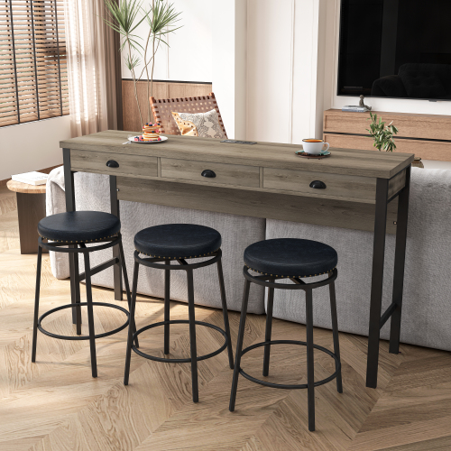 Product Name: Long Dining Table Set with 3 Stools, Easy Assembly, Natural (Same SKU:W75753848)