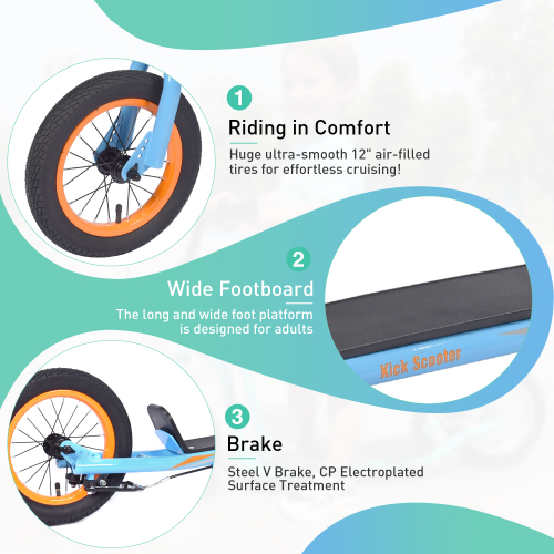 Product Name: Youth Scooter Kick Scooter for Kids 6+ with Adjustable Handlebar, 12 Inch Inflatable Wheels ,Widened non-slip Footboard
