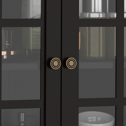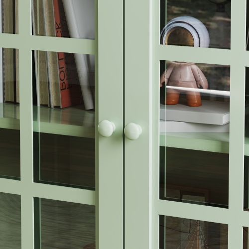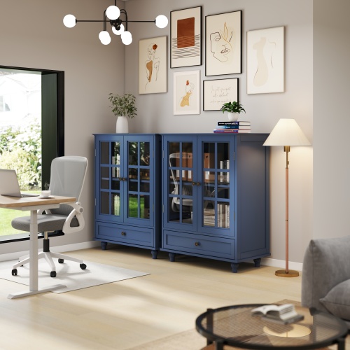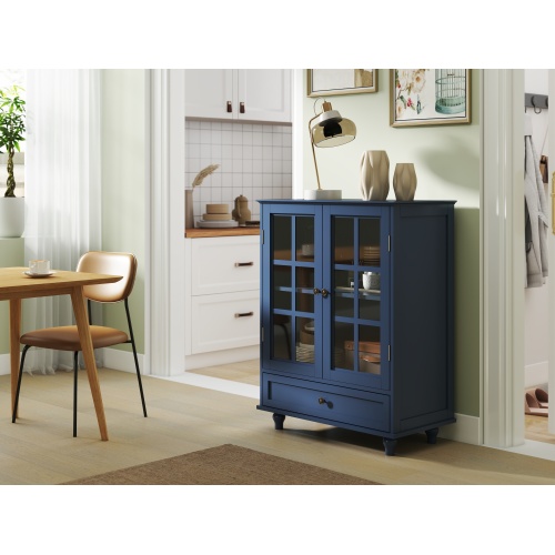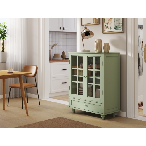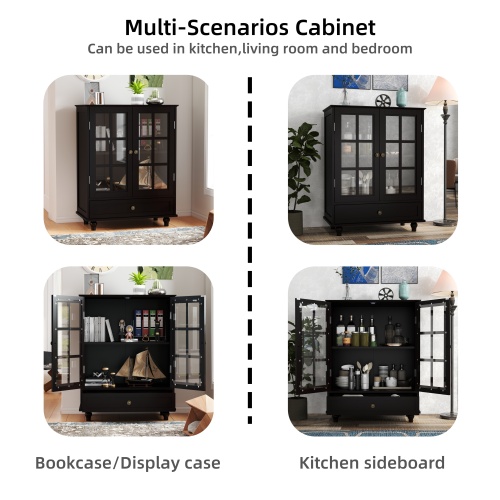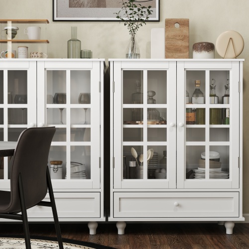 • Minimalist White Buffet Cabinet with Double Glass Doors and Drawer, Modern Wooden Storage Sideboard Cupboard for Living room, Dining Room Hallway Entryway