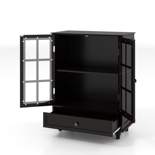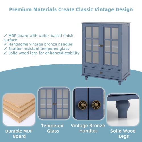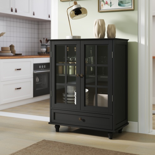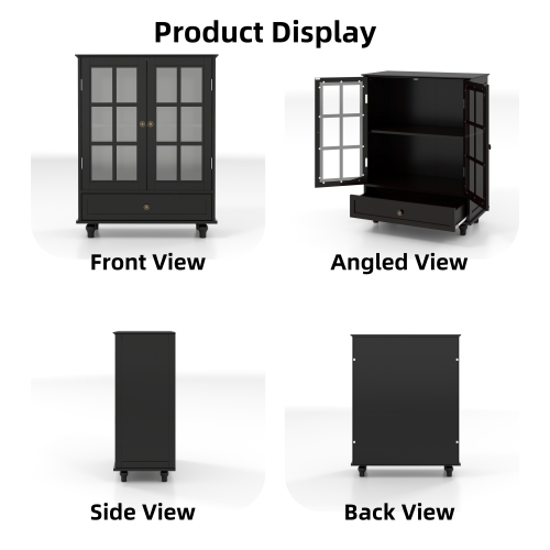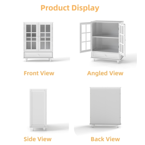 Product Name: Minimalist White Buffet Cabinet with Double Glass Doors and Drawer, Modern Wooden Storage Sideboard Cupboard for Living room, Dining Room Hallway Entryway
