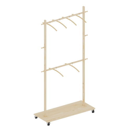 Product Name: Solid Wood Garment Clothes Drying Rack with 6 Wooden Hangers, Space-Saving Design, Adjustable Shelf, and Wheels for Easy Mobility – Perfect for Bedroom, Living Room, or Entryway
