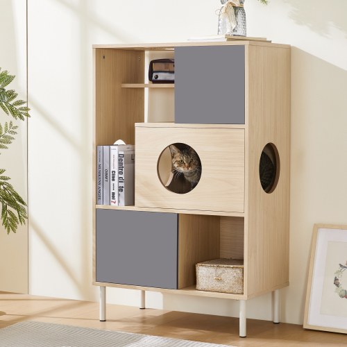 Product Name: 2 IN 1 Modern Cat Tree Bookshelf with Storage, Wood Bookcase with Litter Box Enclosure, Cat Climbing Shelves with Hidden Storage