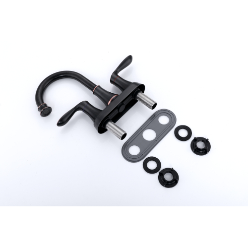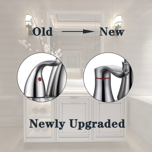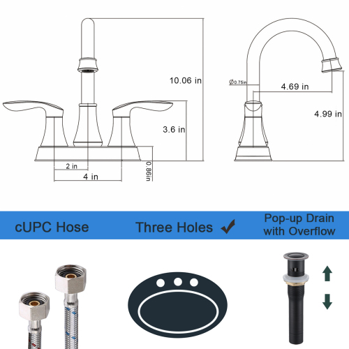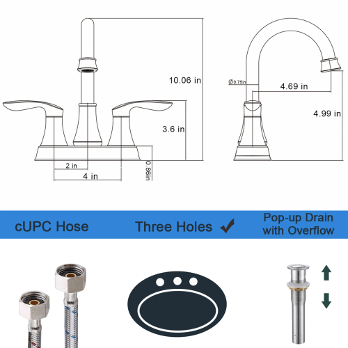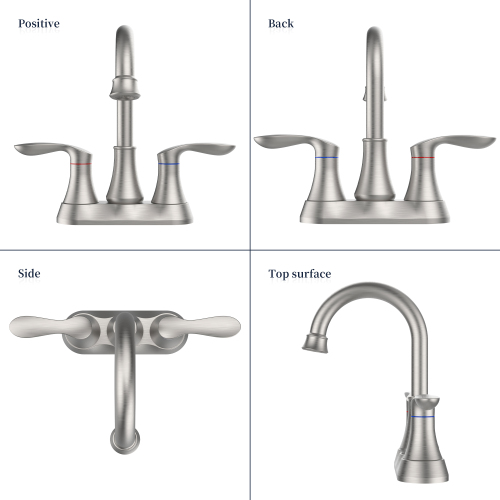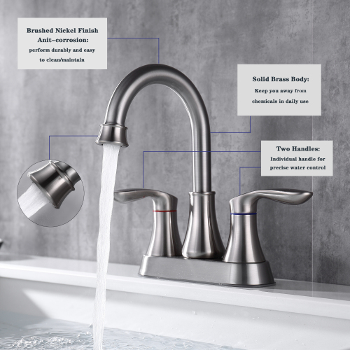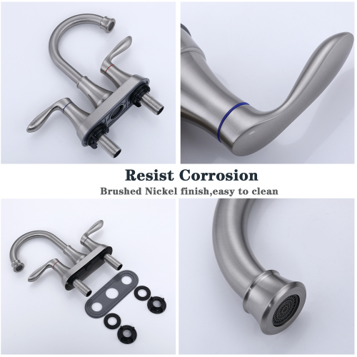 Product Name: Bathroom Faucet Brushed Nickel with Pop-up Drain & Supply Hoses Two-Handle 360 Degree High Arc Swivel Spout Centerset 4 Inch Vanity Sink Faucet 4011B-NP