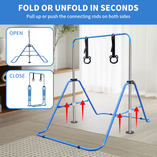 Product Name: Blue Multi-Functional Adjustable Height Children's Horizontal Gymnastic Bar With Bear Rings