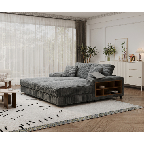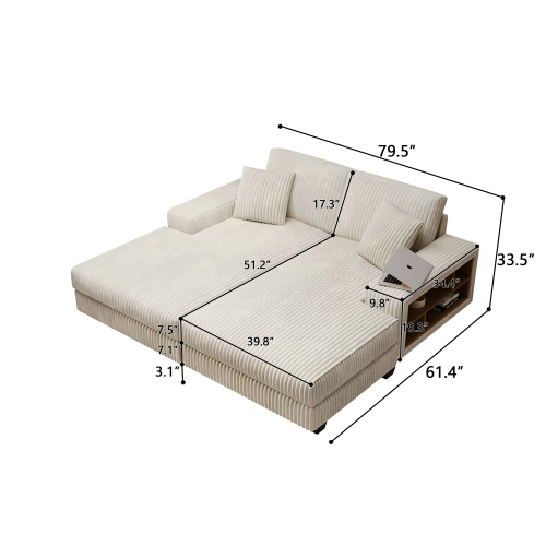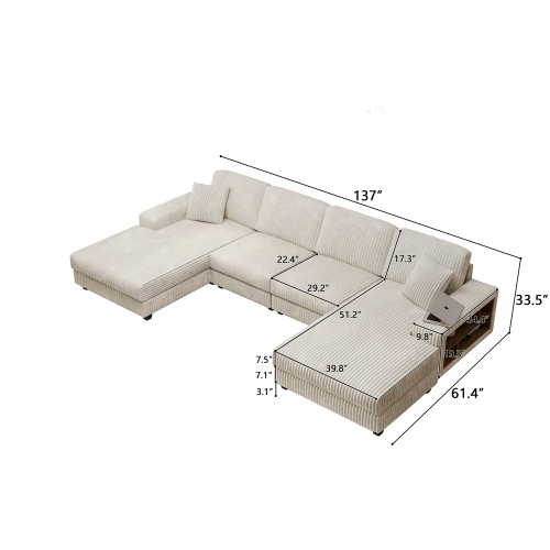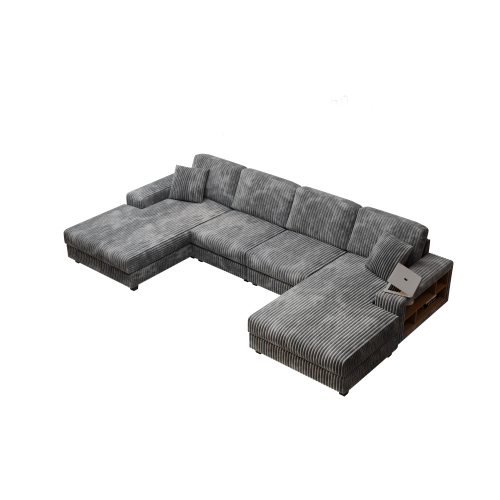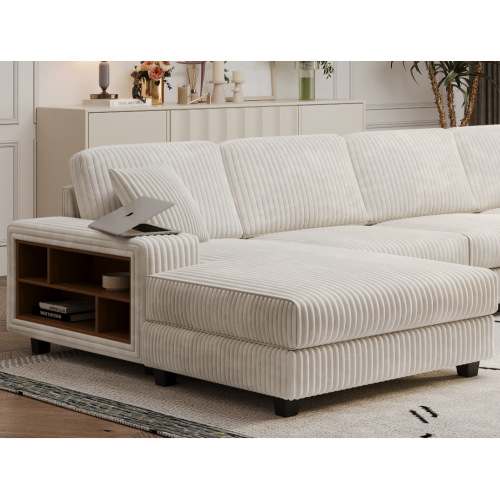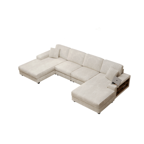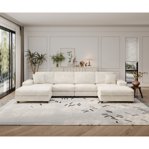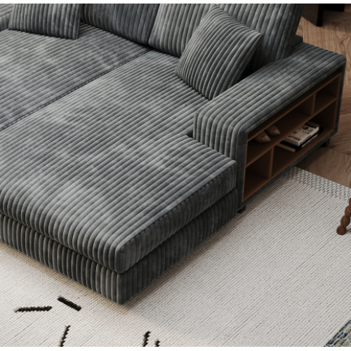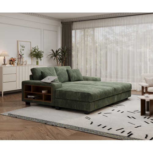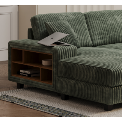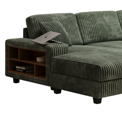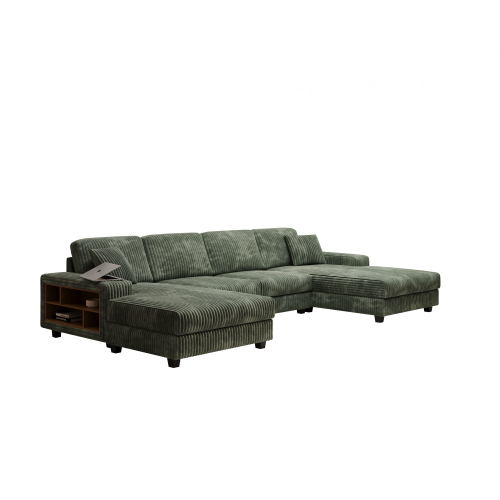 Product Name: Convertible U-shaped Combination Sofa, Corduroy Fabric, Modern Comfortable Large Size 4 Seat Sofa, Living Room Double Lounge Chair ,Green