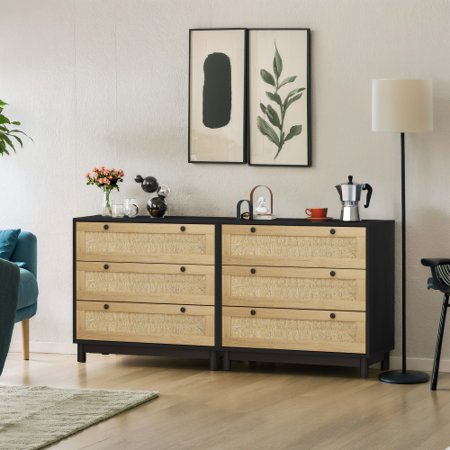 Product Name: 30.31"3-Drawers Storage Cabinet Rope Woven Drawer,for Bedroom,Living Room,Dining Room,Hallways,Black