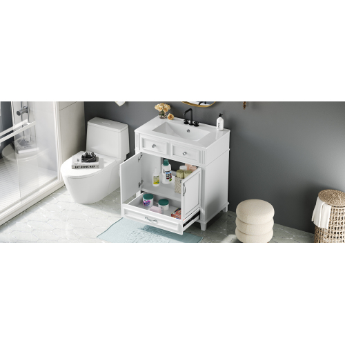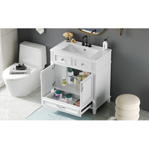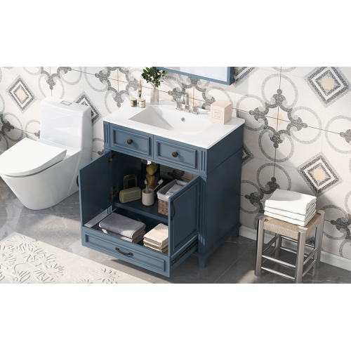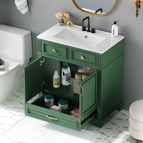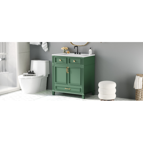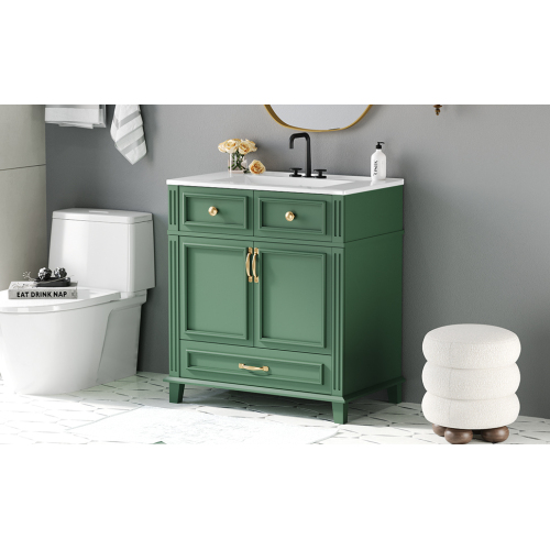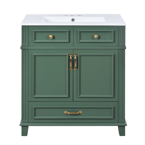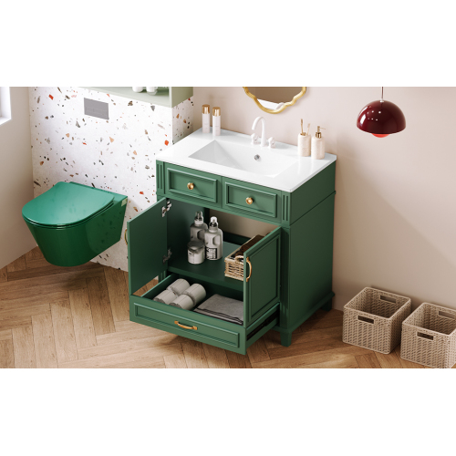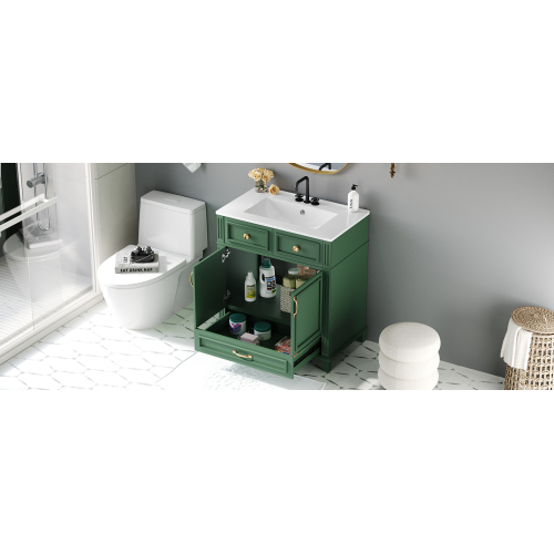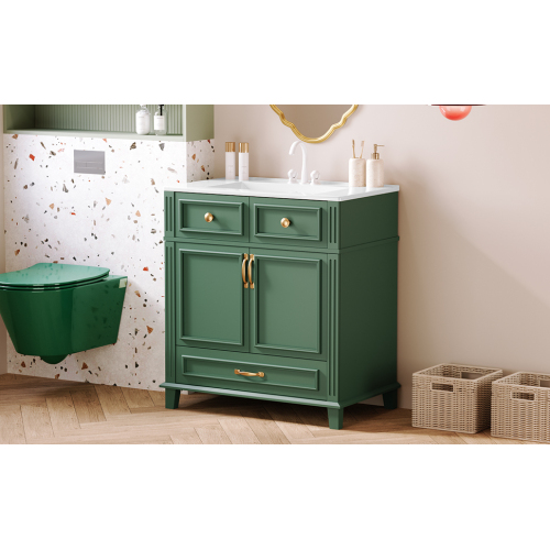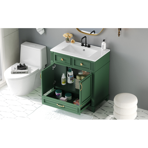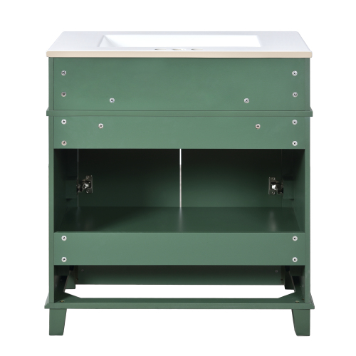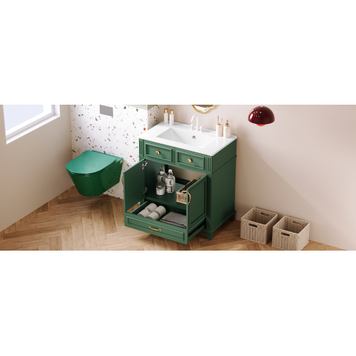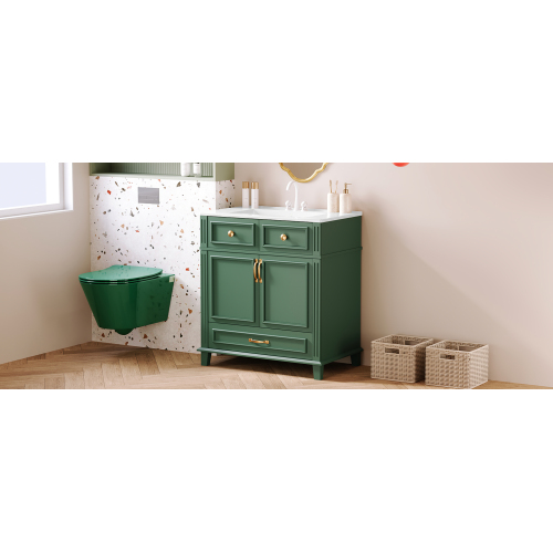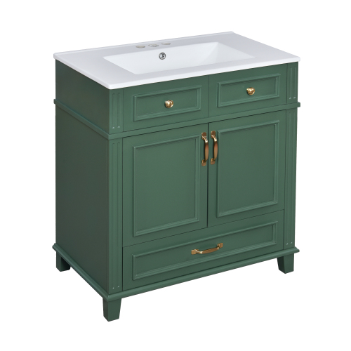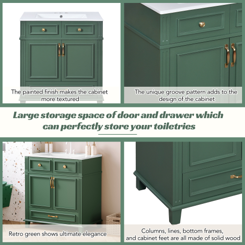 Product Name: 30'' Bathroom Vanity with Ceramic Sink,Solid Wood Frame Bathroom Storage Cabinet with Soft Closing Doors,Retro Style, Green