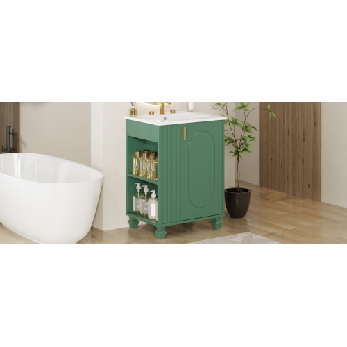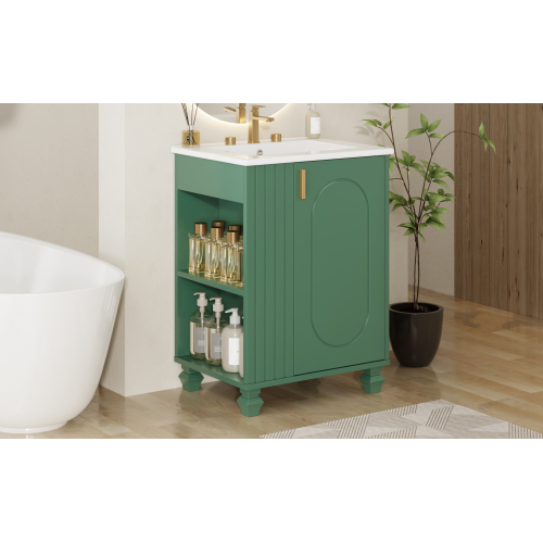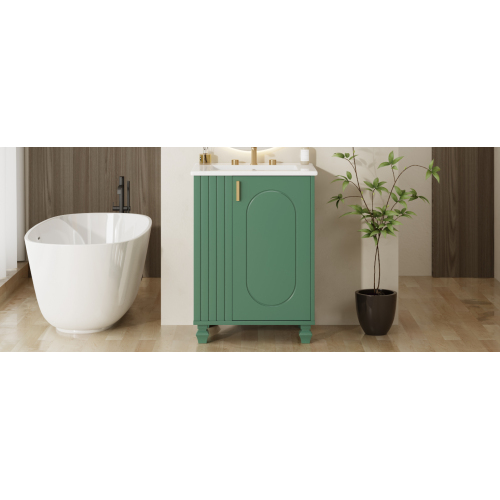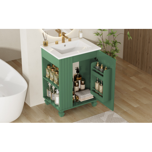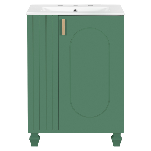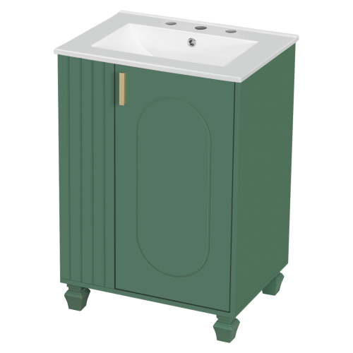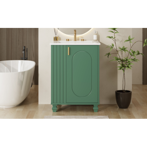 Product Name: 24" Bathroom Vanity with Sink, Bathroom Cabinet with Door Shelf, Side Open Storage, Solid Wood Frame,Soft Closing Door, Green