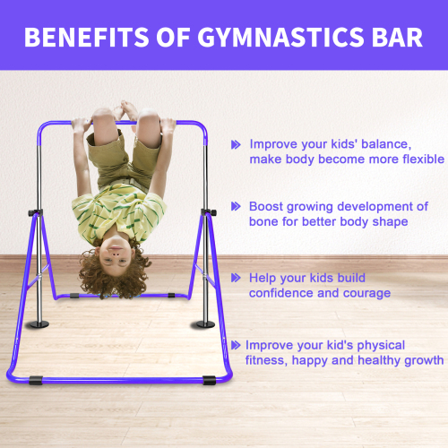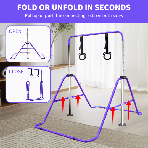 Product Name: Purple Multi-Functional Adjustable Height Children's Horizontal Gymnastic Bar With Bear Rings