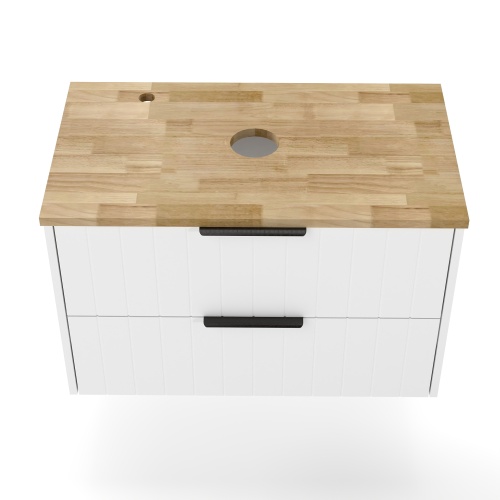 32-Inch bathroom vanity,only cabient,Solid wood top, double drawer design, drawer line shape,Soft-Close System,White+Natural