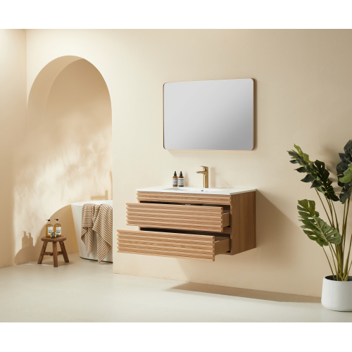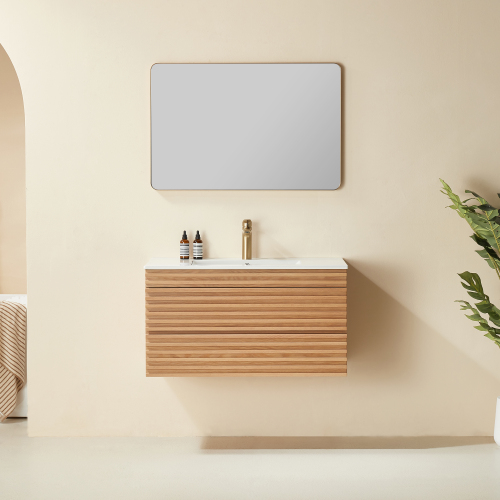 36" Wall Mounted & Floating Single Vanity with Ceramic Sink