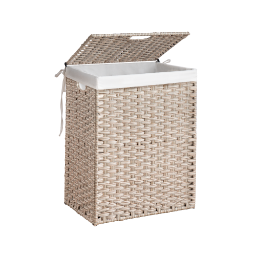 Laundry Hamper With Lid PE Rattan Powder Coating Frame Clothes Hampers with 01 Removable Bags, 100L, Gray Color