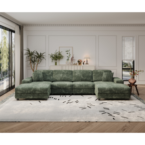 Convertible U-shaped Combination Sofa, Corduroy Fabric, Modern Comfortable Large Size 4 Seat Sofa, Living Room Double Lounge Chair ,Green