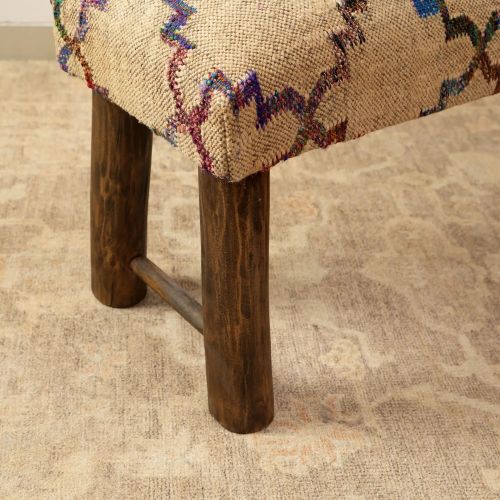 Decorative Jute Fabric Upholstered Multicolor Bench-45X14X18"