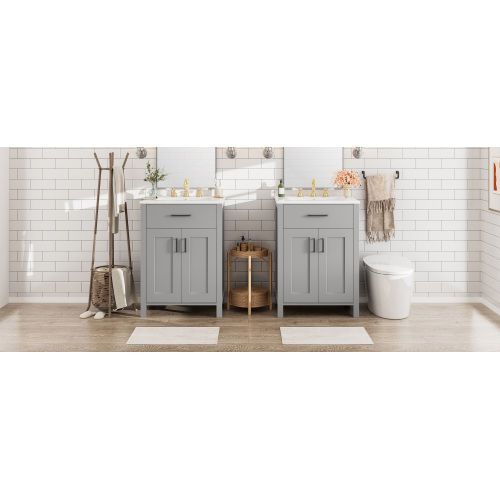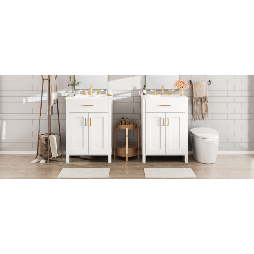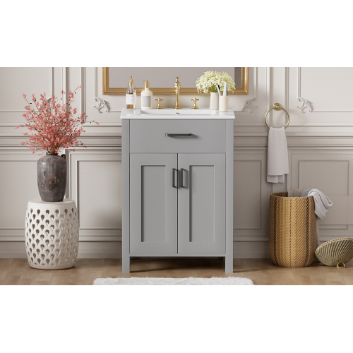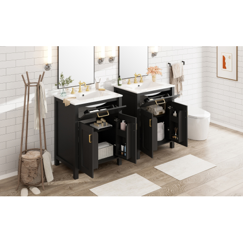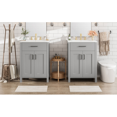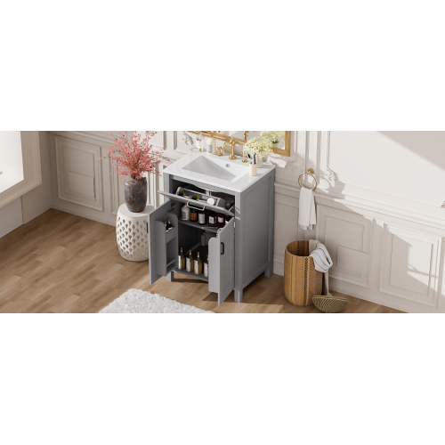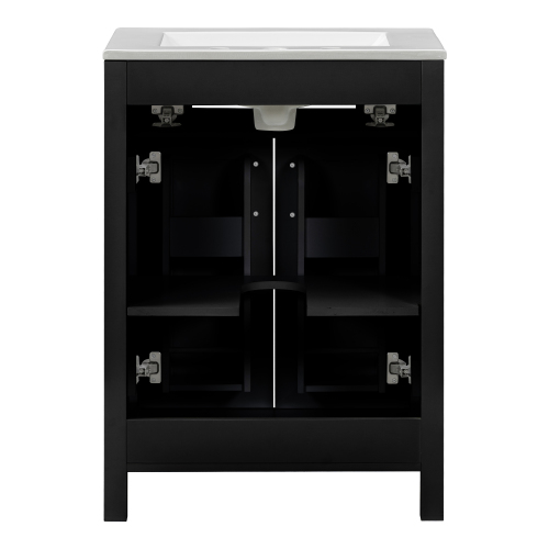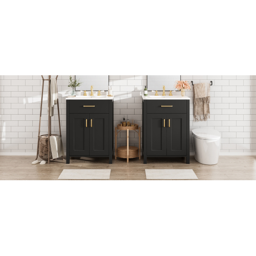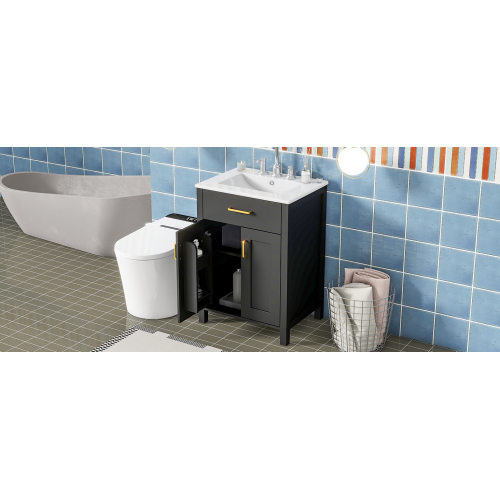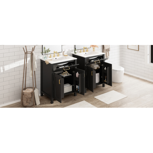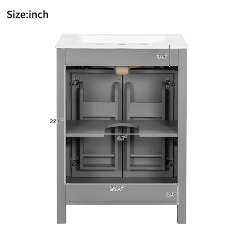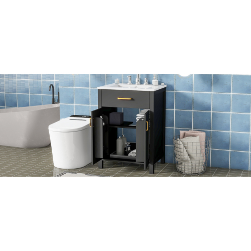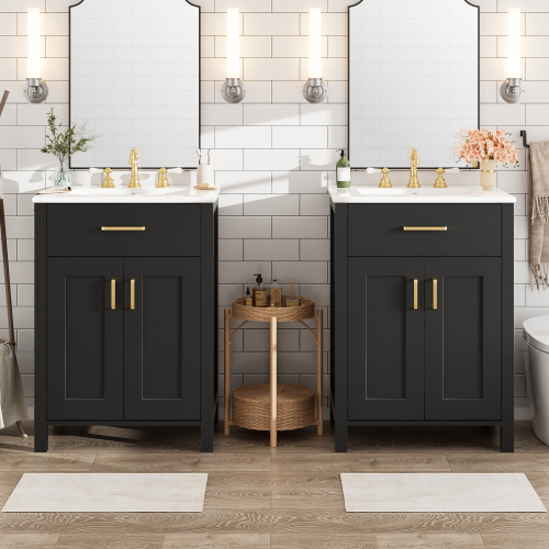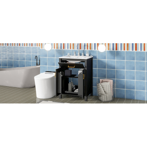 • Modern 48-Inch Bathroom Vanity with Ceramic Sink, Soft-Close Doors, Flip Drawer, Double-Layer Door Shelves, Elegant Storage Solution